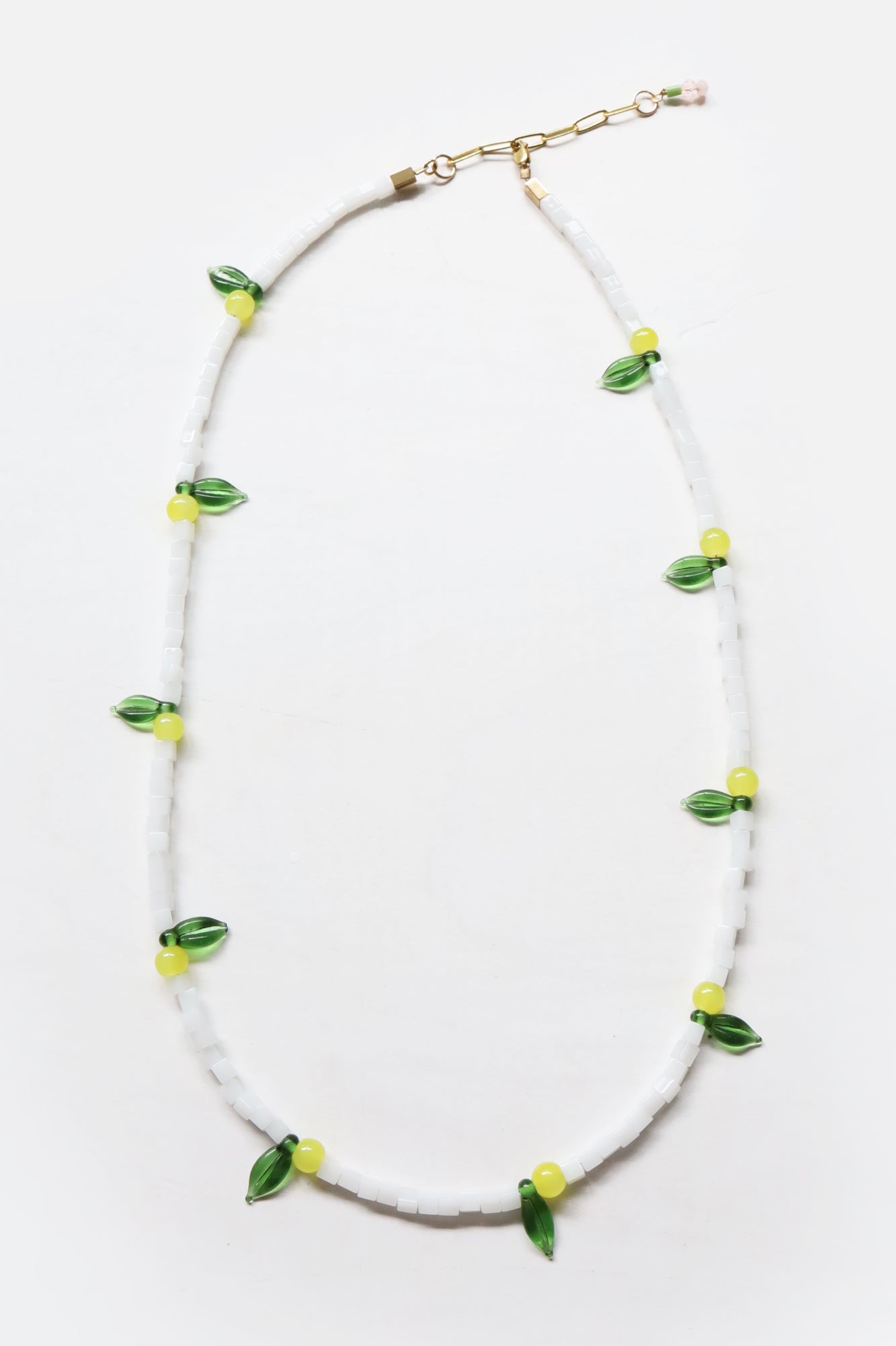 One of a kind glass bead necklace in Lemon Drop