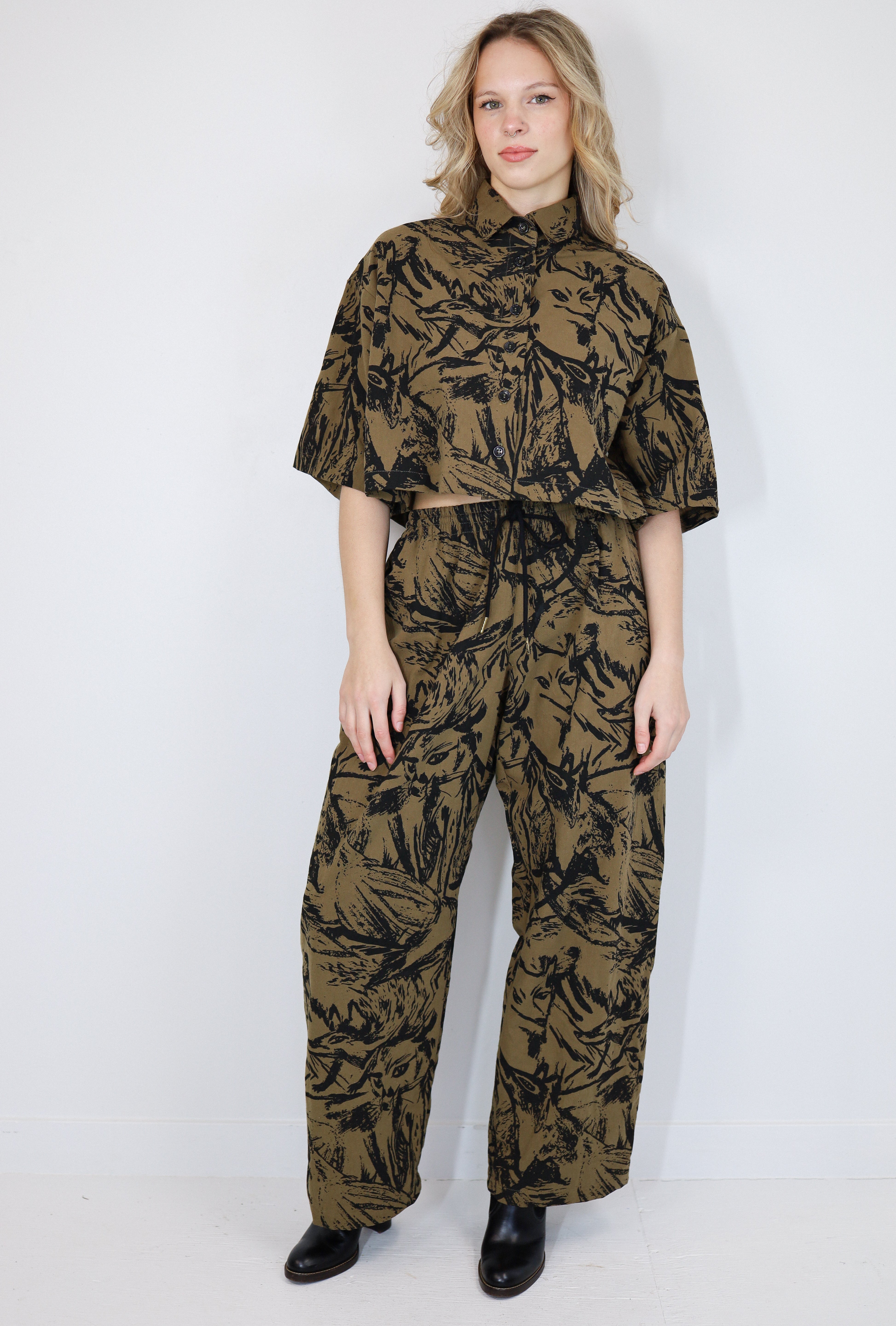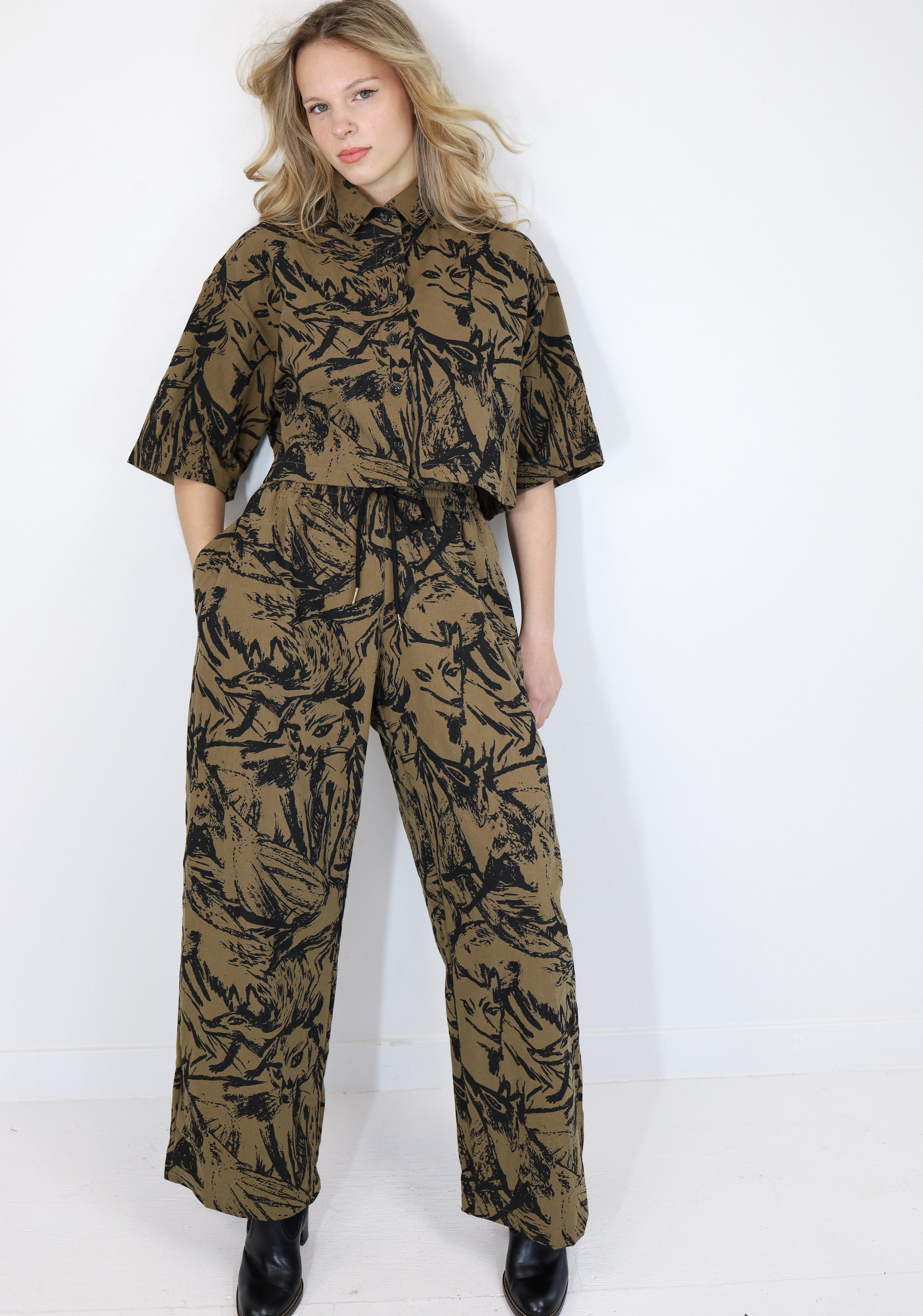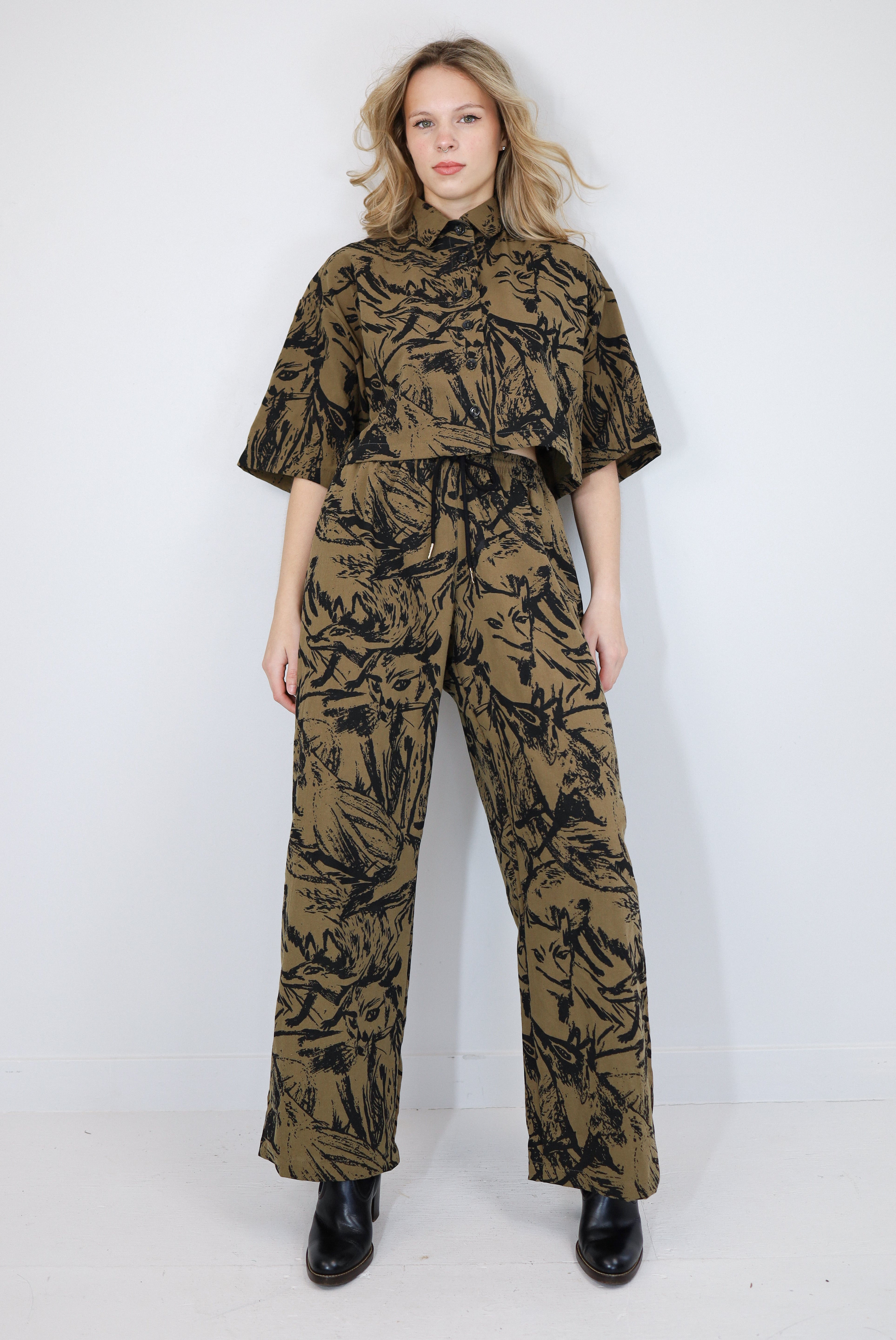 Printed in-house in our Fox Den print—a subtly abstracted gathering of foxes that feels more like a texture than a typical all-over print. It’s playful without being loud, perfect for print lovers and minimalists alike.