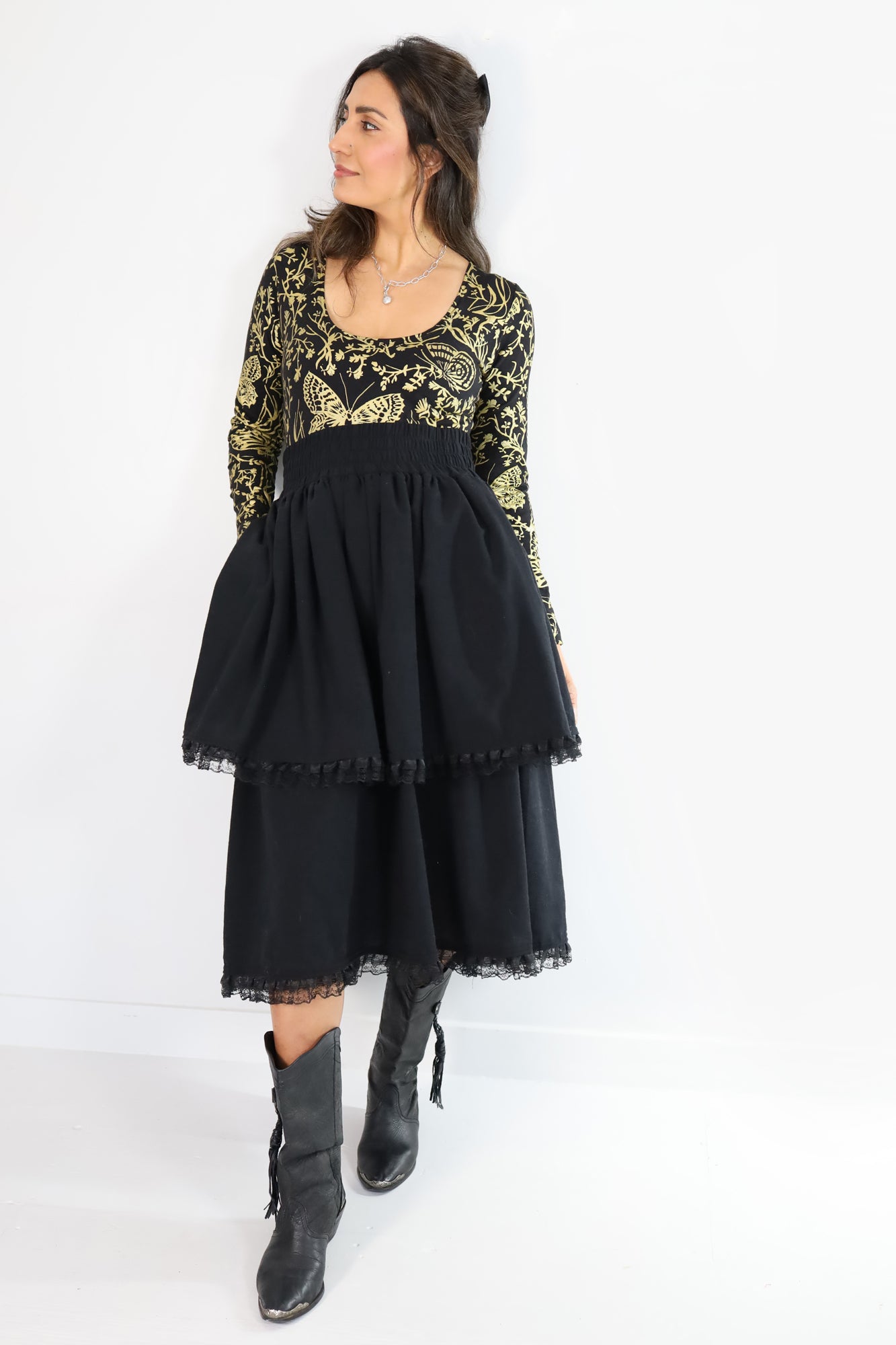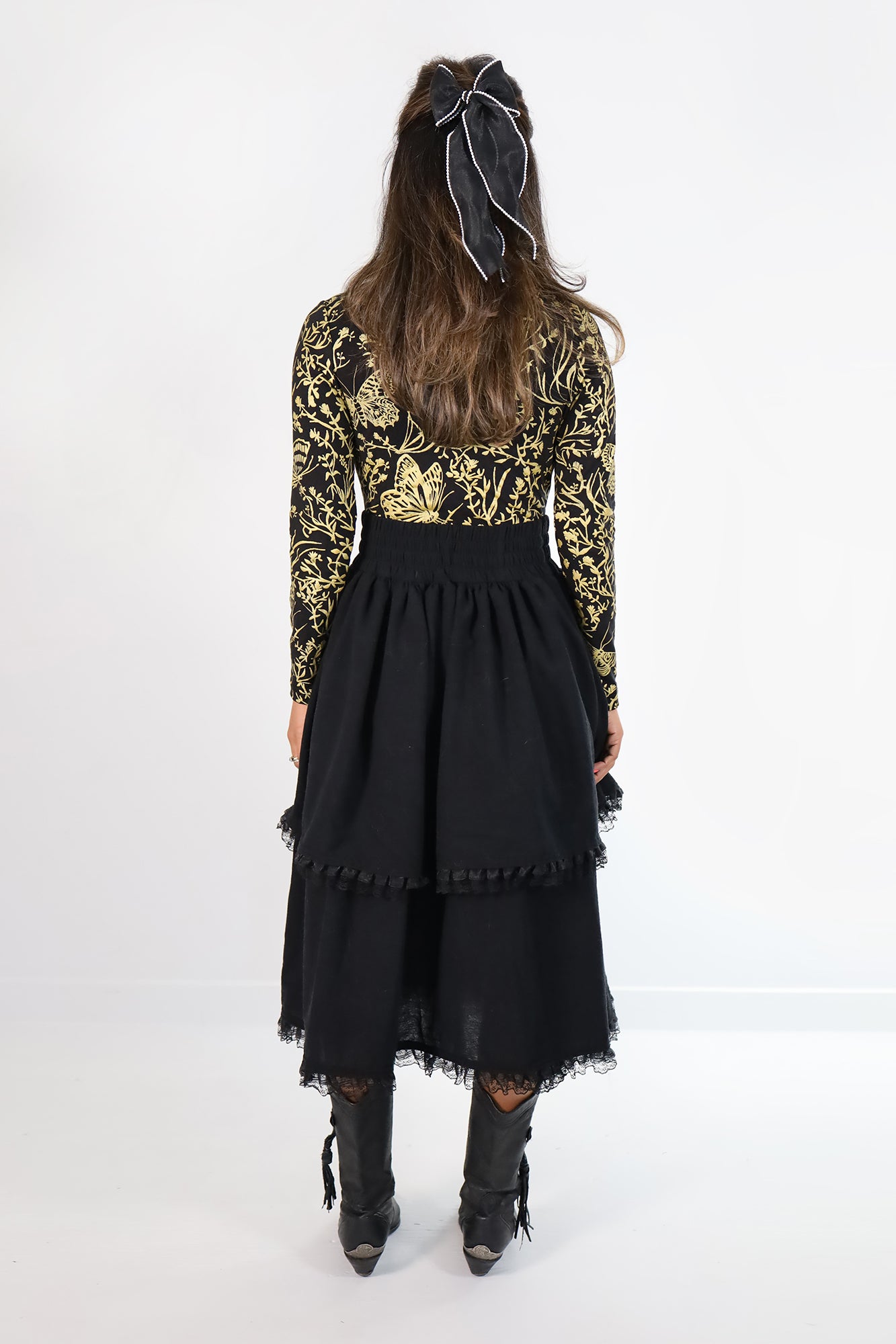 Luisa Tiered Prairie Skirt in Black