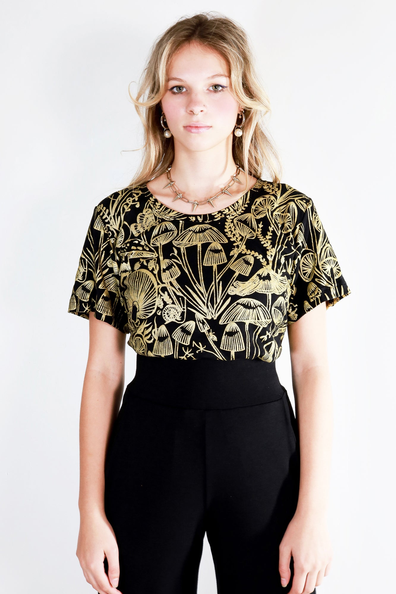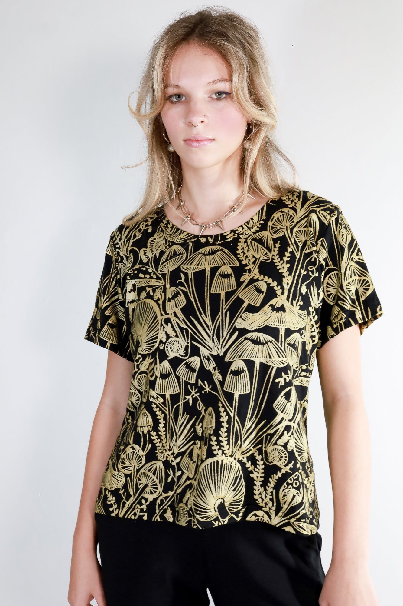 We hope you're as psyched as we are for our newest mushroom print, ‘Shroomed’. Deep in the shade of the forest tangles, clusters of little mushrooms begin to rise. A safe haven for critters of all kinds, ‘Shroomed’ is peppered with snails, moths and beetles, as well as neighbouring flora.