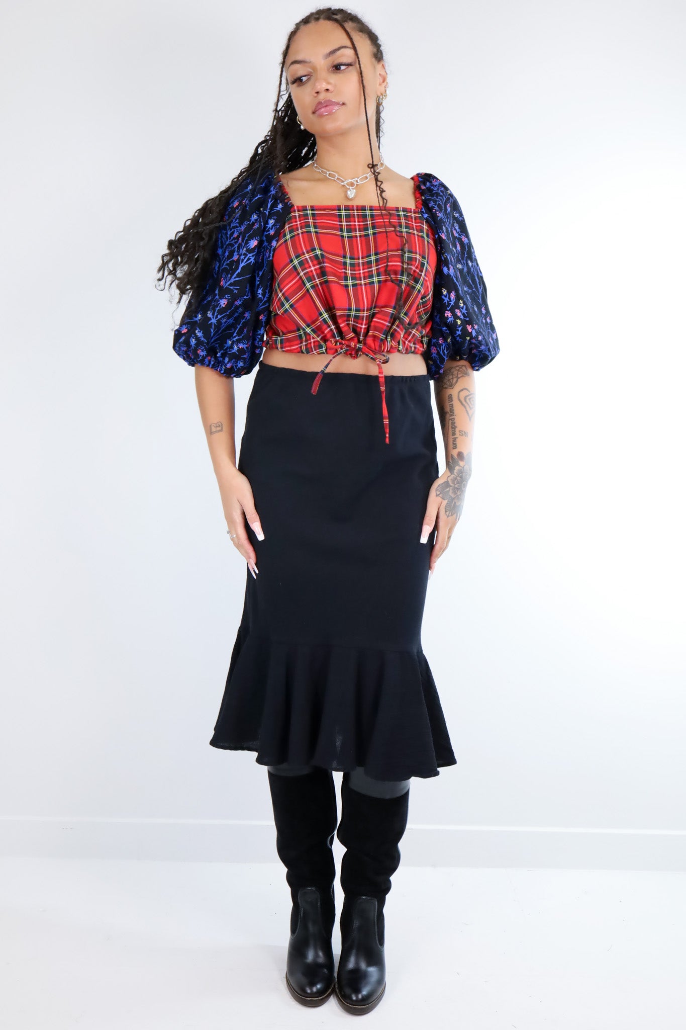 Our new 'Pepper' Top is perfect for our Reworked collection. A slightly cropped balloon sleeved peasant top, it features a delicate open neckline and an adjustable tie at the waist so you can cinch it or leave it loose. Pairs perfectly with our wide leg pants or our new Daphne mini skirt.