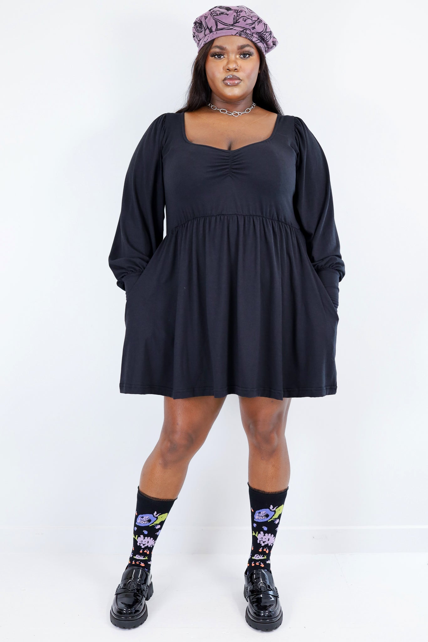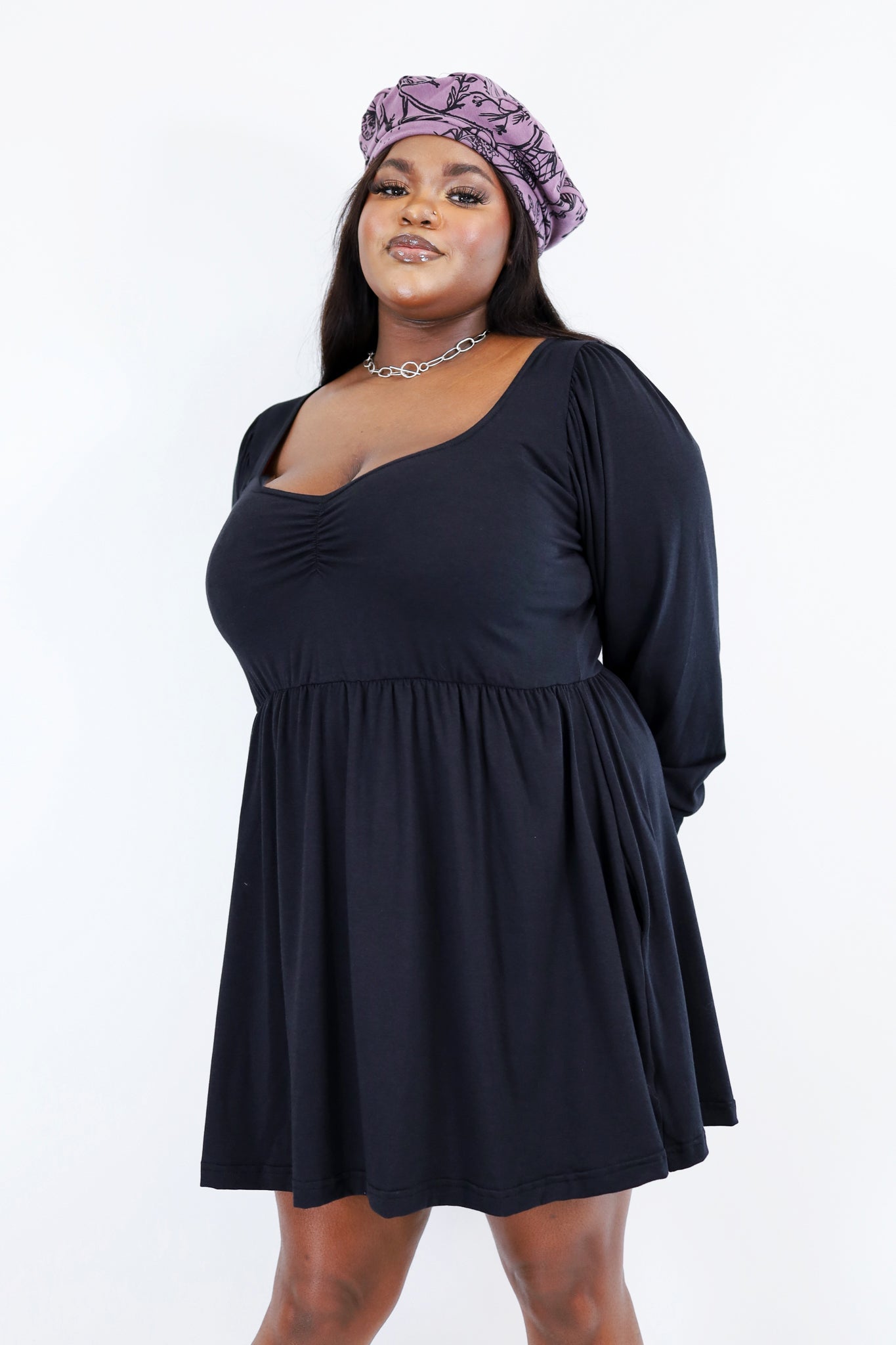 This gorgeous dress features a scooped sweetheart neckline and elegant billowy sleeves. The perfect classy dress for any occasion. Available in both mini and midi lengths.