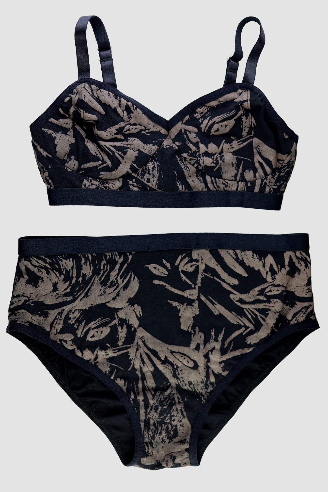 Coffee on Black 'Fox Den' Bralette & Underwear Set