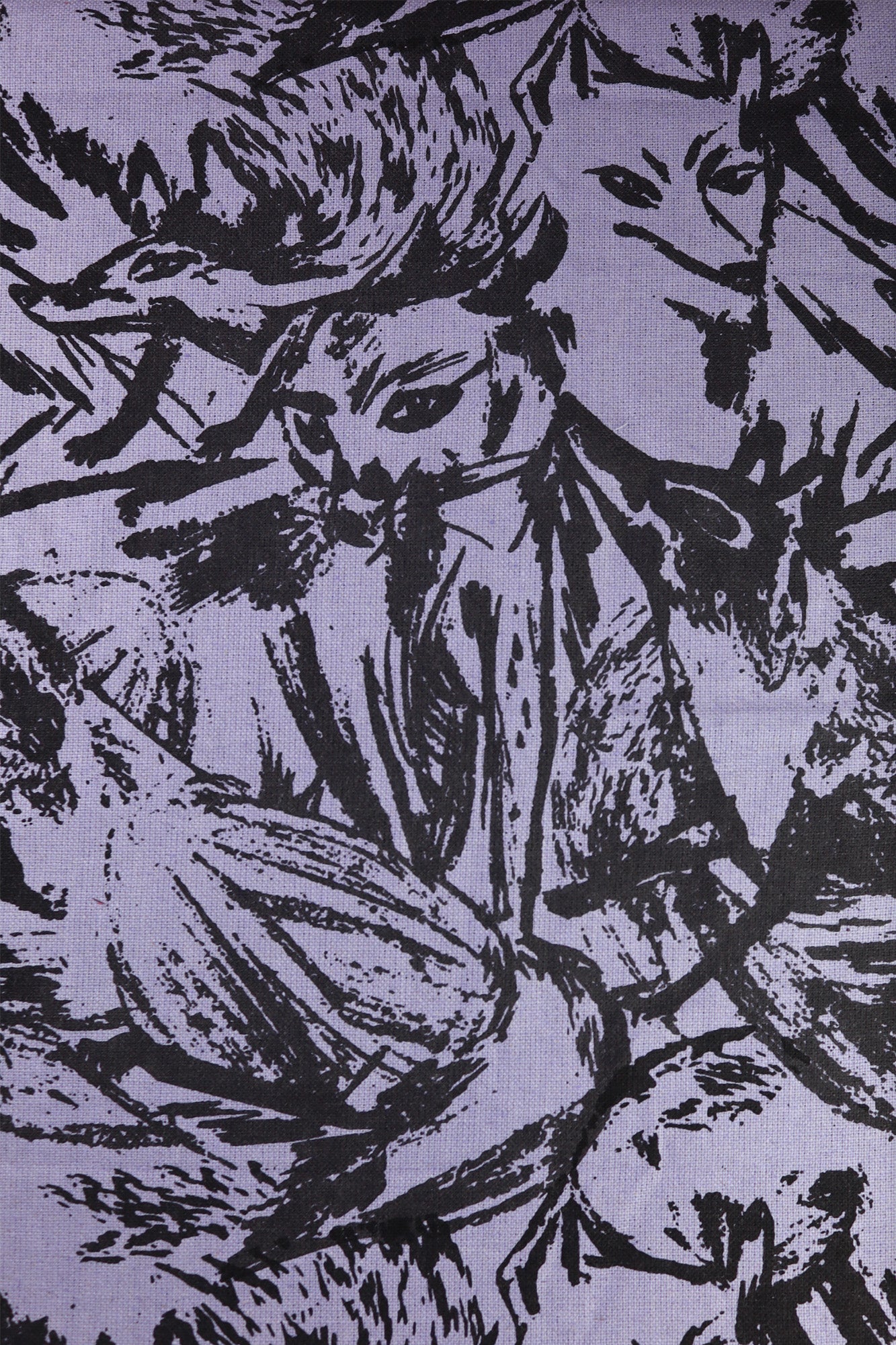 'Birds of Prey' on Lilac Raw Silk by the Metre