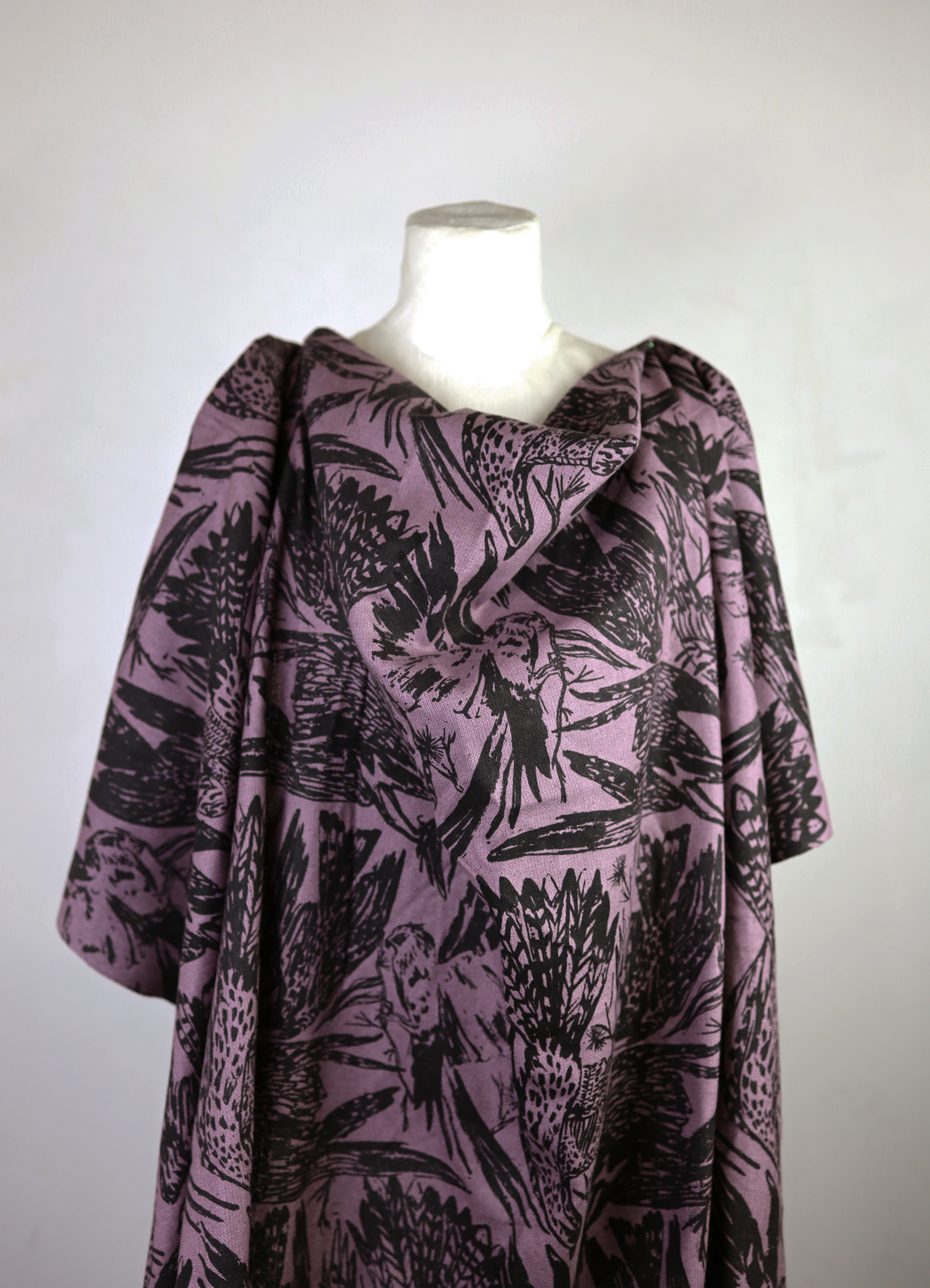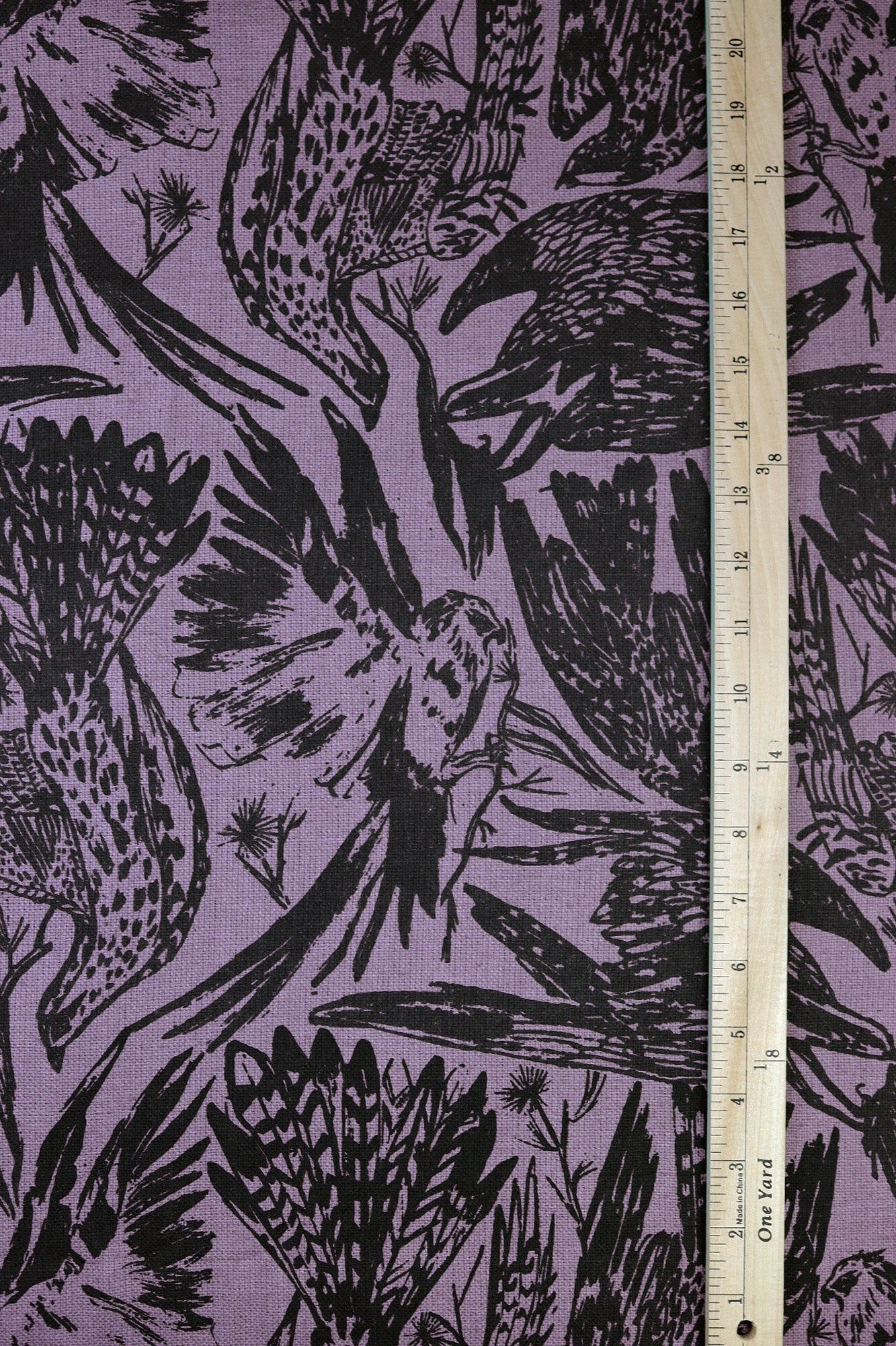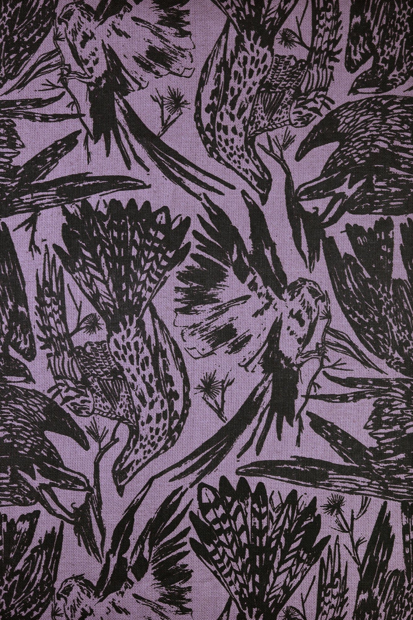 'Birds of Prey' on Lilac Raw Silk by the Metre
