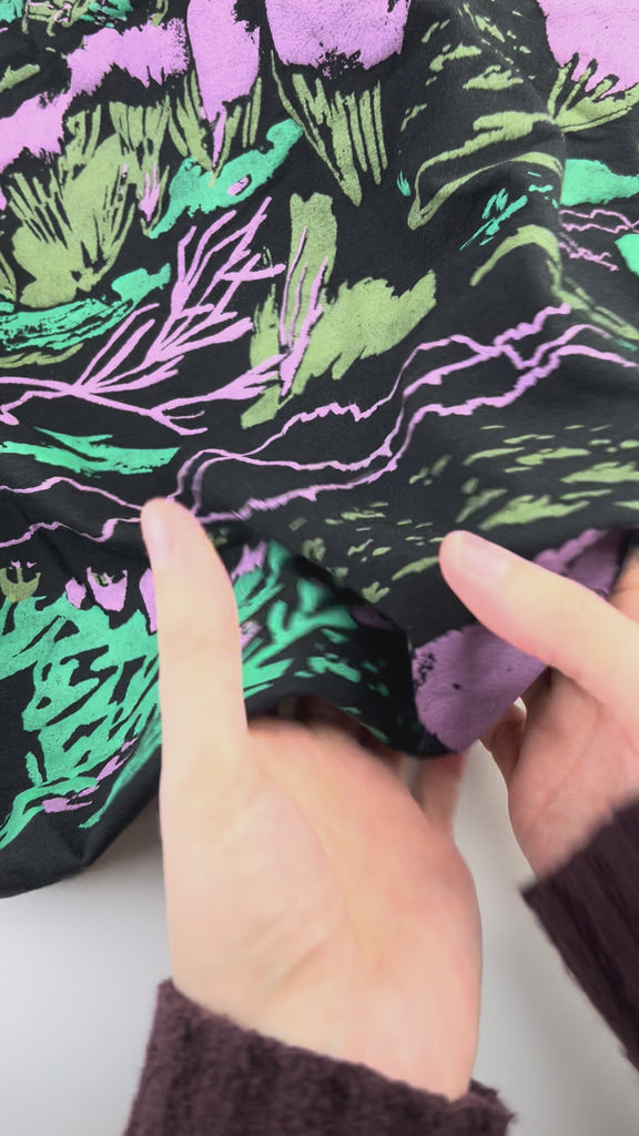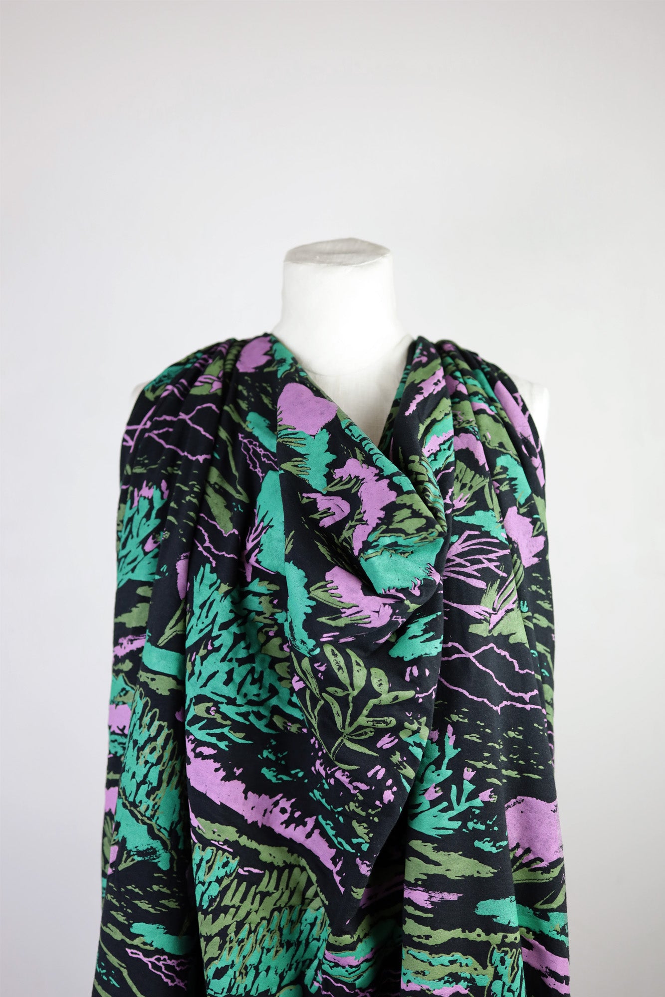 This fabric is a blend of organic cotton and bamboo stretch jersey, offering elegant drape and top comfort. Great for t-shirts, elastic pants, and dresses.