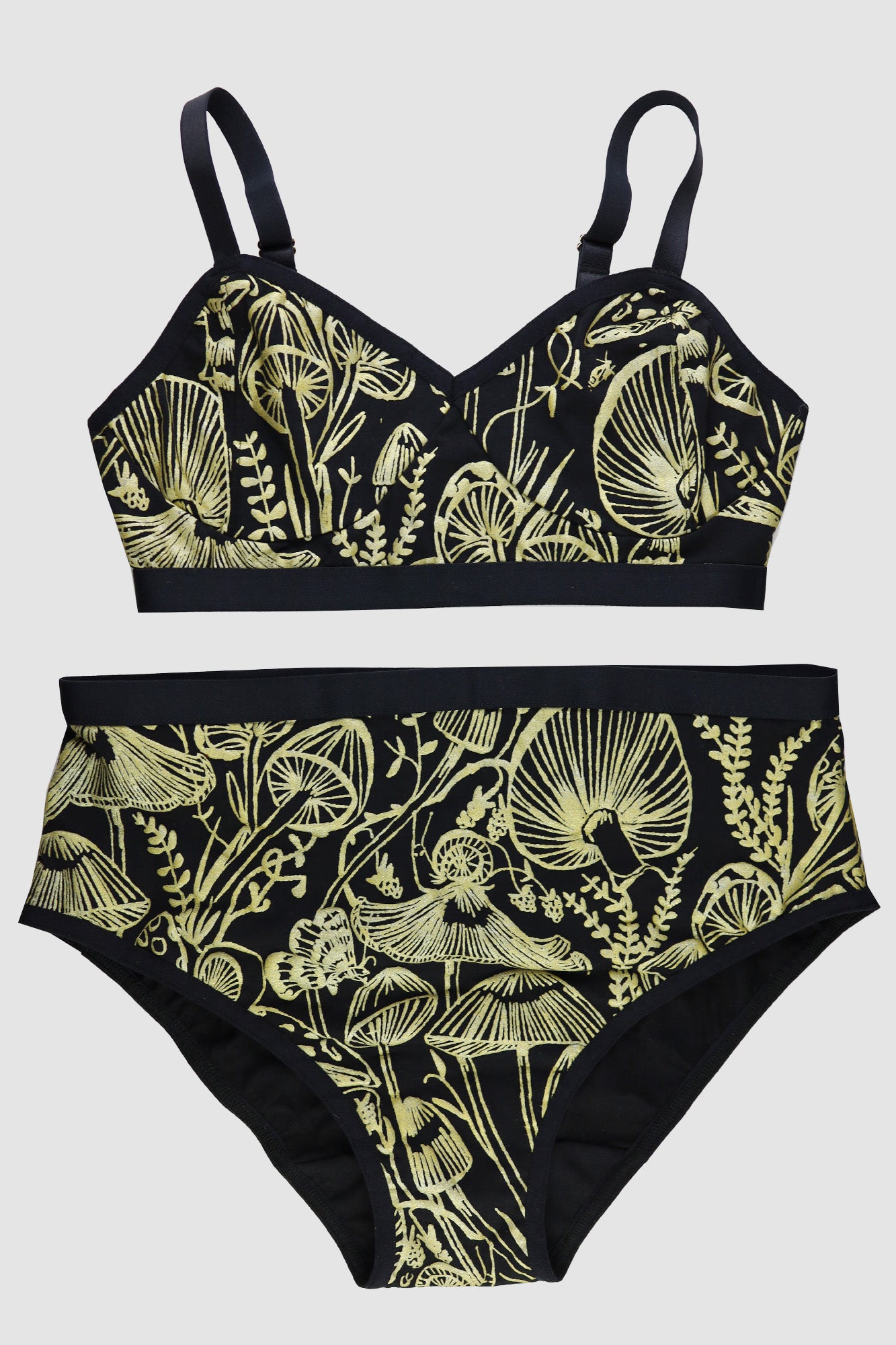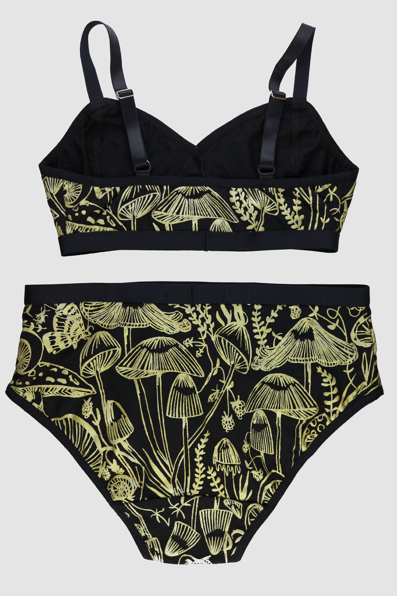 Gold on Black 'Shroomed' Bralette & Underwear Set