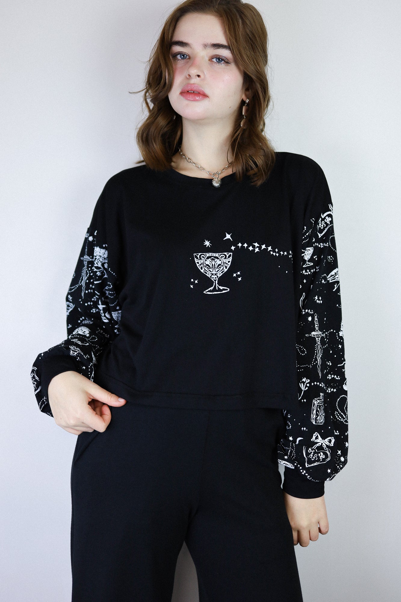 White 'Spellbound' & 'Crystal Cup' Patchwork Boxy Long Sleeve