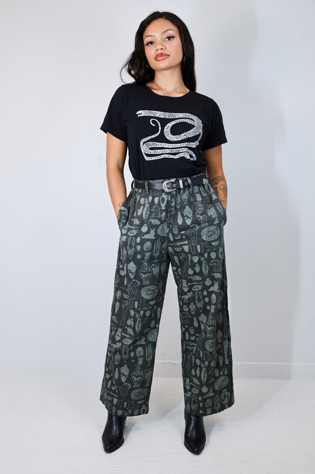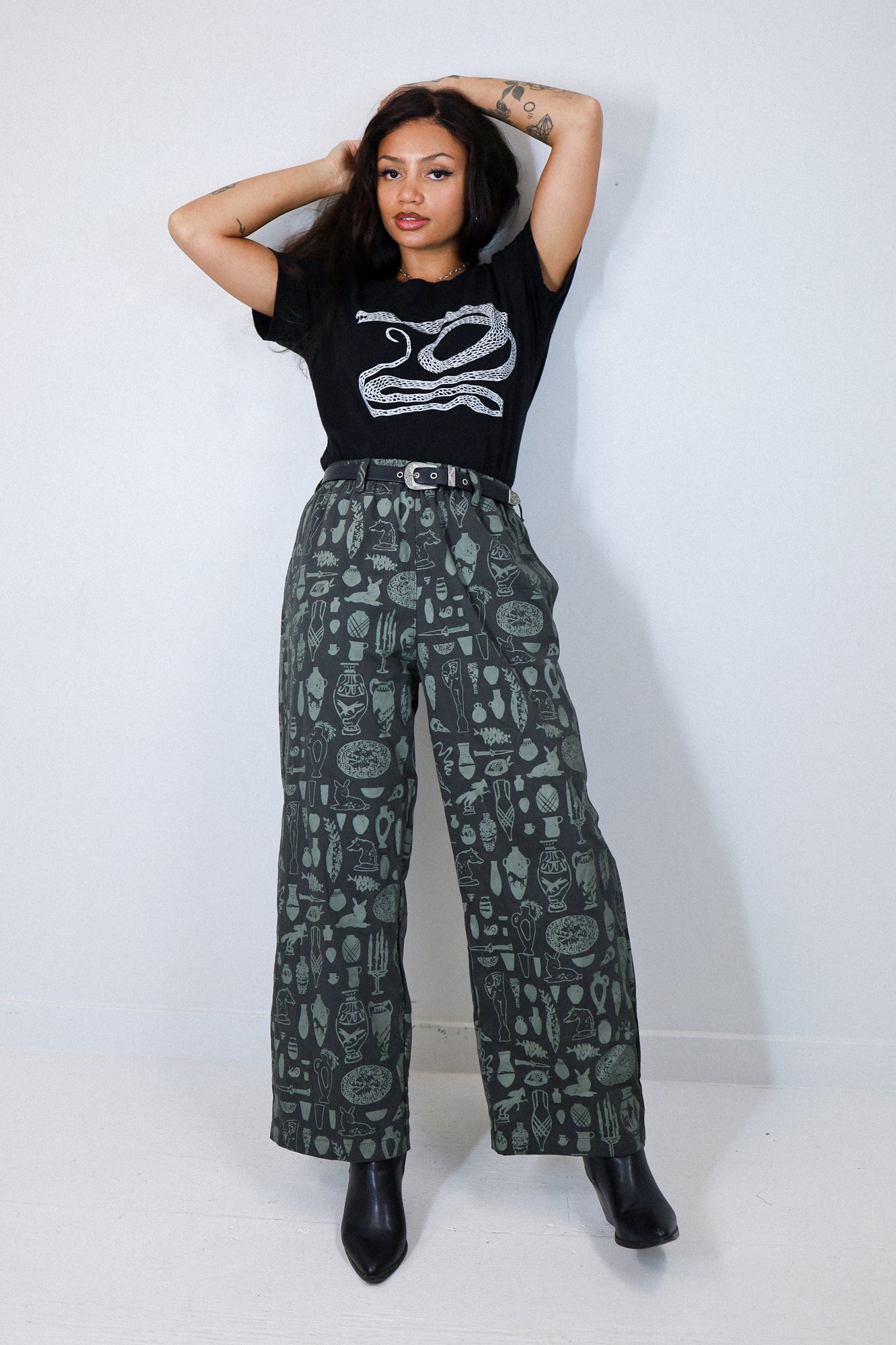 Shown here in our Curio print, a matcha-green ink design with curious detail that feels just right for fall.