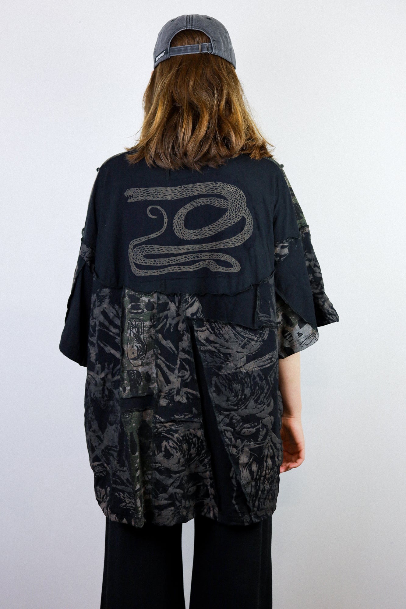 Each garment featured in our Reworked drops is one-of-a-kind. As all of our pieces are made to order in house, we've been stashing our off cuts for moments like this, creating one of a kind garments that are both wearable and unique. Please reach out for any sizing questions. Due to the intricate nature of the reworked process, items can be exchanged for store credit. If you're interested in a piece, but don't see your size available, or the piece has sold out, please feel free to contact us and express your interest. Although we cannot guarantee an identical remake, we can usually achieve something with a similar aesthetic.