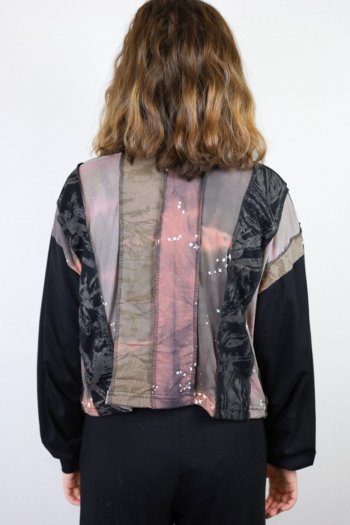 Each garment featured in our Reworked drops is one-of-a-kind. As all of our pieces are made to order in house, we've been stashing our off cuts for moments like this, creating one of a kind garments that are both wearable and unique. Please reach out for any sizing questions. Due to the intricate nature of the reworked process, items can be exchanged for store credit. If you're interested in a piece, but don't see your size available, or the piece has sold out, please feel free to contact us and express your interest. Although we cannot guarantee an identical remake, we can usually achieve something with a similar aesthetic.