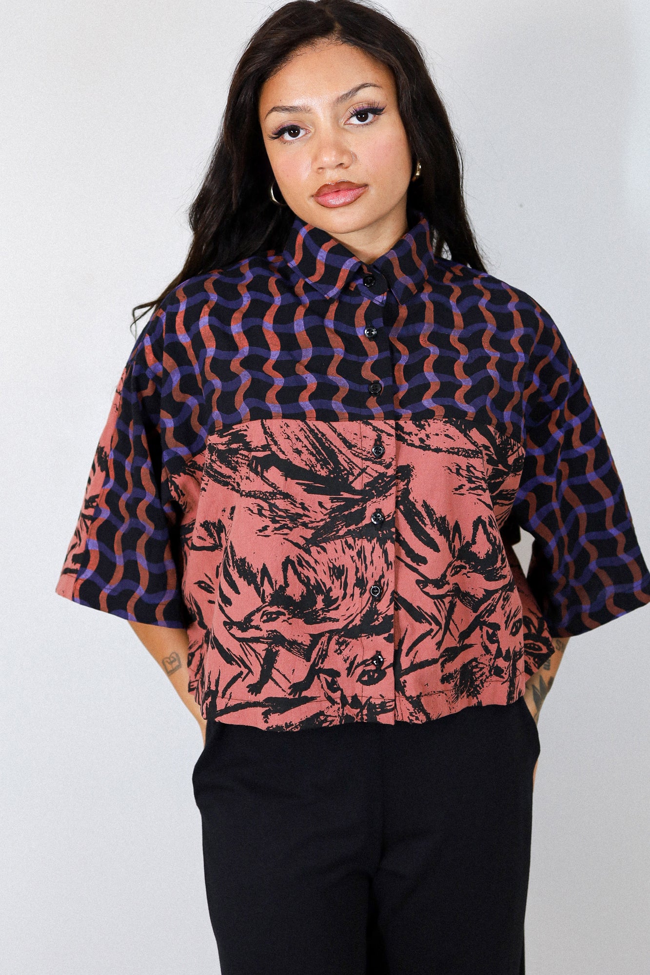 'Wavy Plaid' & 'Fox Den' Boxy Button-Up (Size 2)