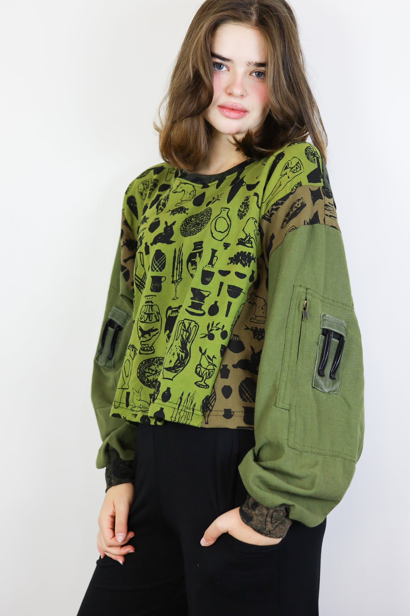 Black 'Curio' on Red Sand Storm Cropped Pullover (Sizes 1, 2, & 3)