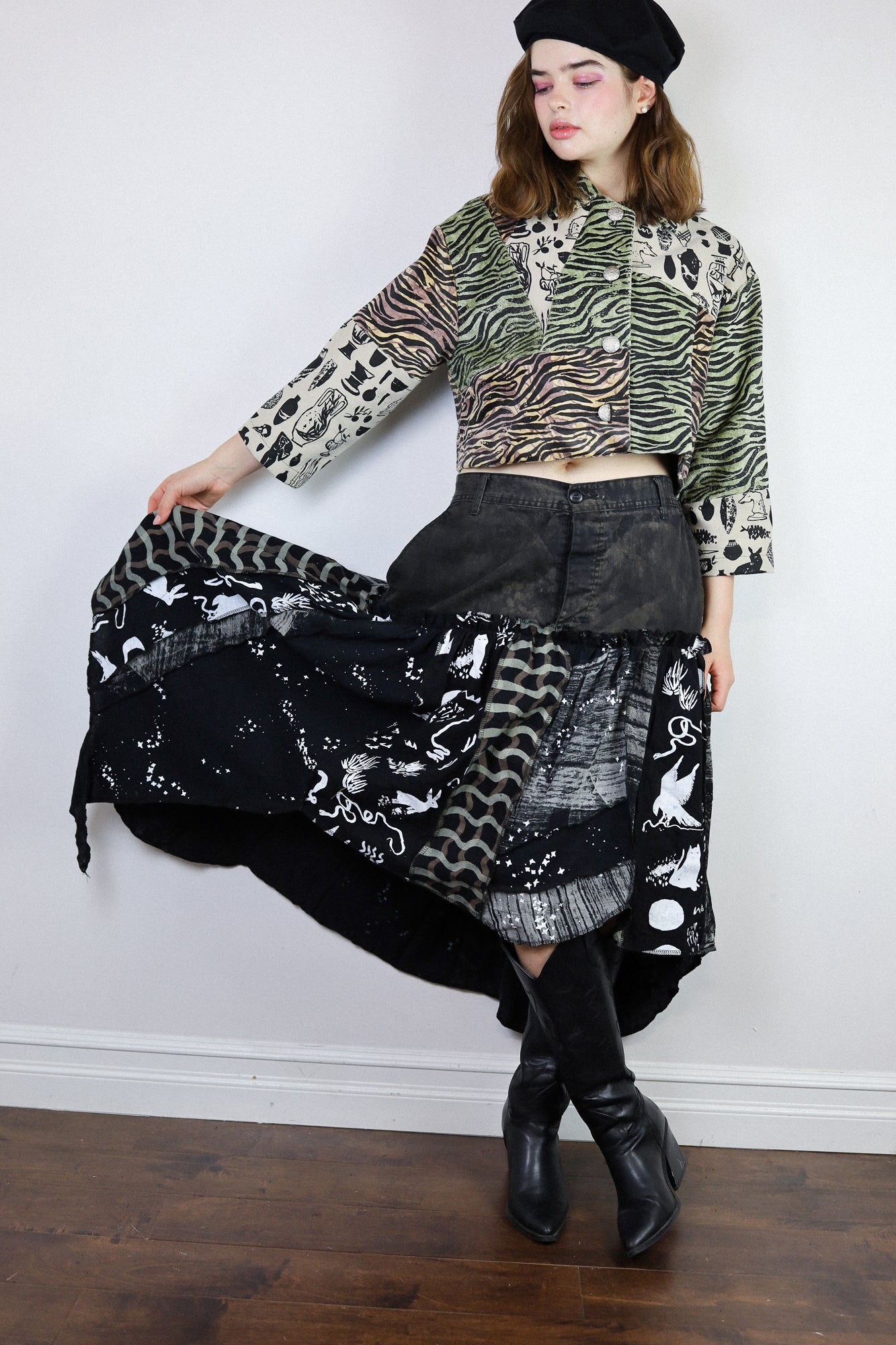 Adjustable Denim Patchwork Skirt (31.5" to 37" Waist)