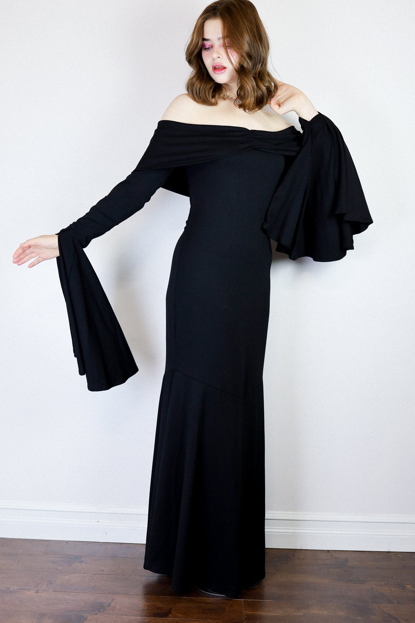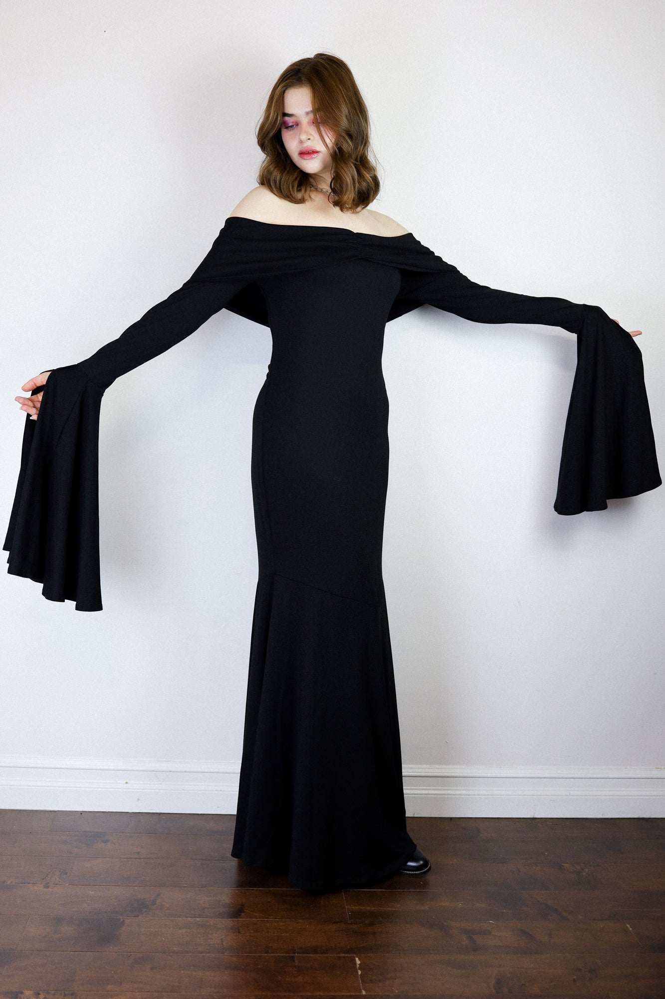 The Angelica Dress is a dramatic vision in our cotton-bamboo stretch jersey, sculpting the body with a sleek, elongated fit that cascades into a striking, floor-skimming flare. Its smooth, fluid drape creates effortless movement with each step, captivating as you glide across the floor. Soft, breathable stretch keeps it comfortable while maintaining its undeniably sultry shape.
