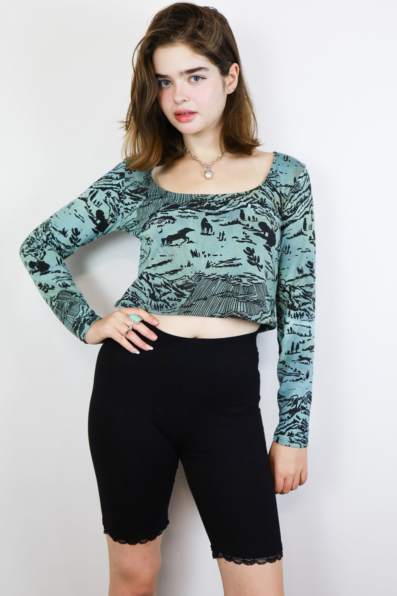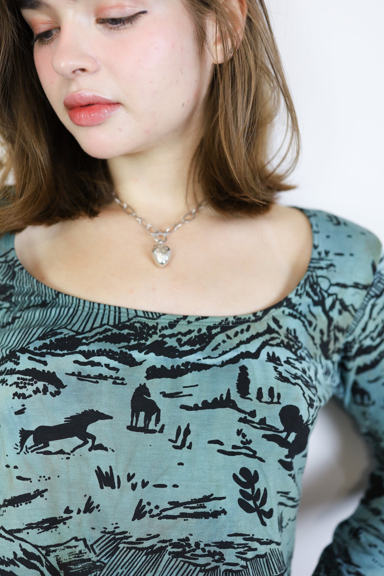 Black 'Shadow Canyon' on Ocean Basic Scoop Neck Long Sleeve