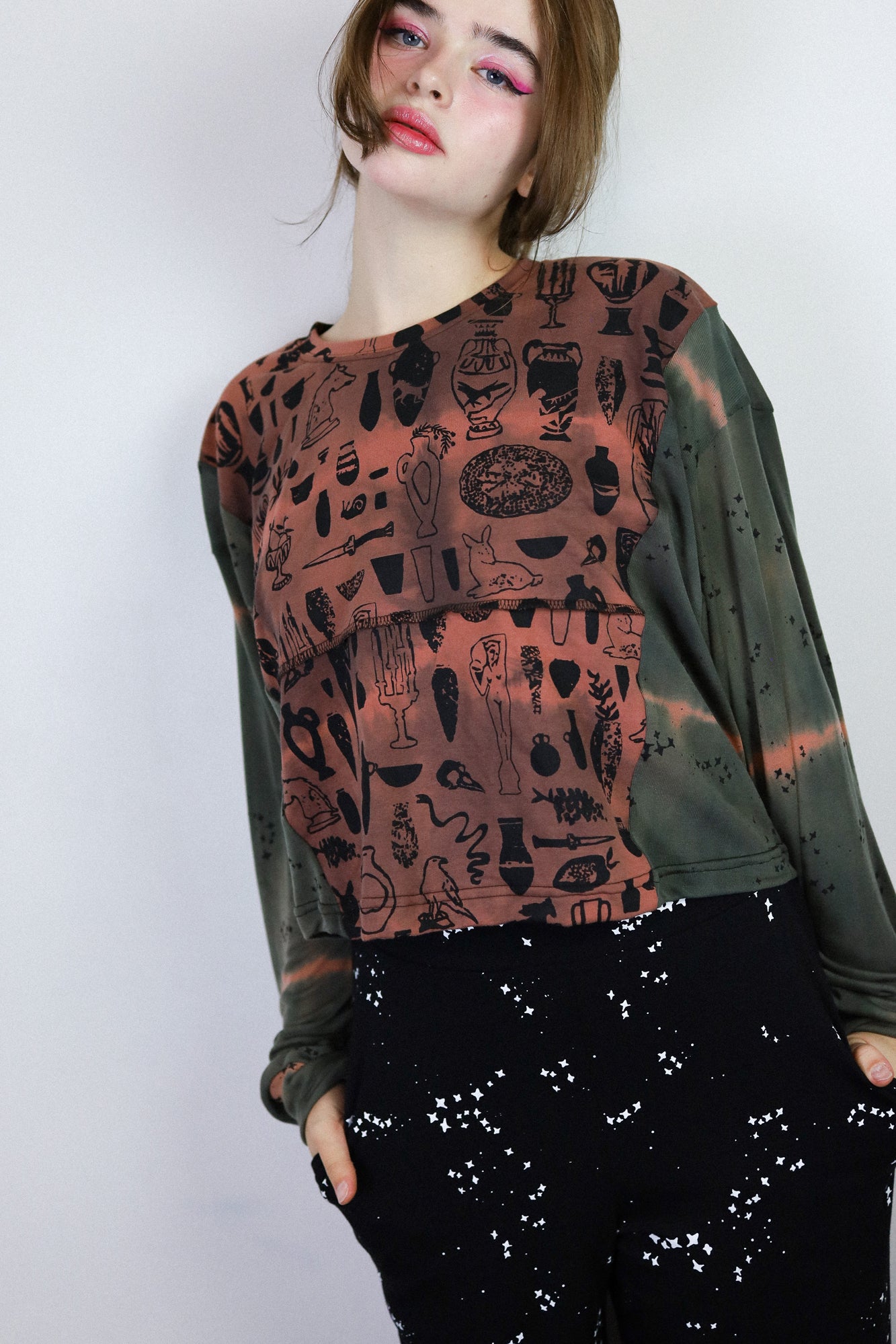 The perfect unisex boxy long sleeve created with remnants of T&B fabrics of the past.