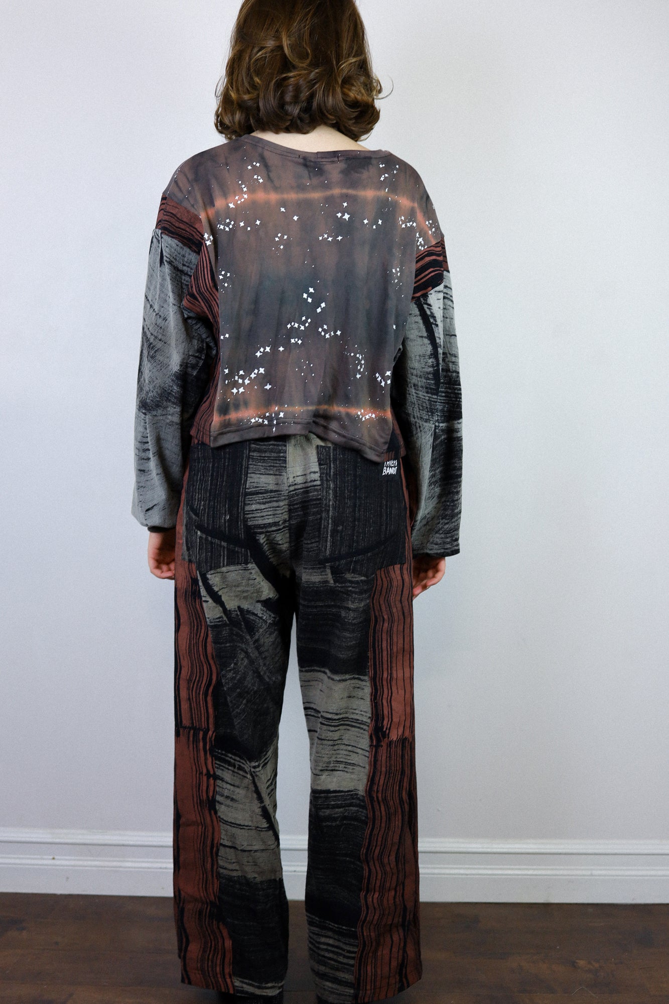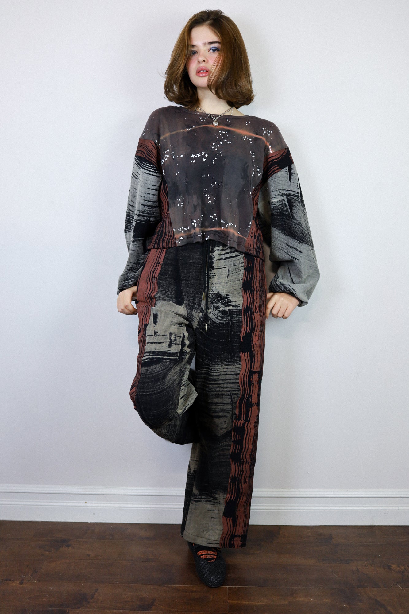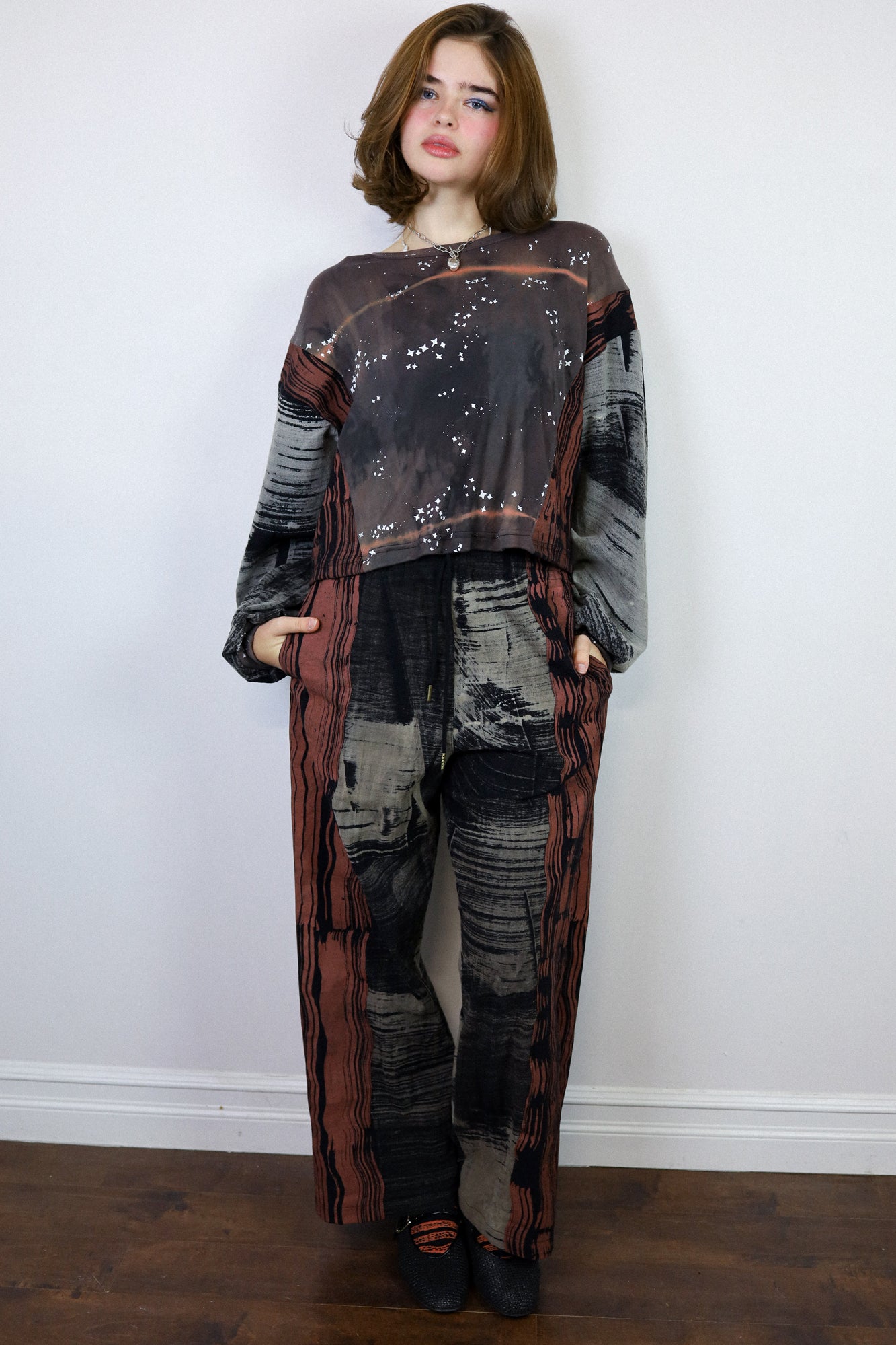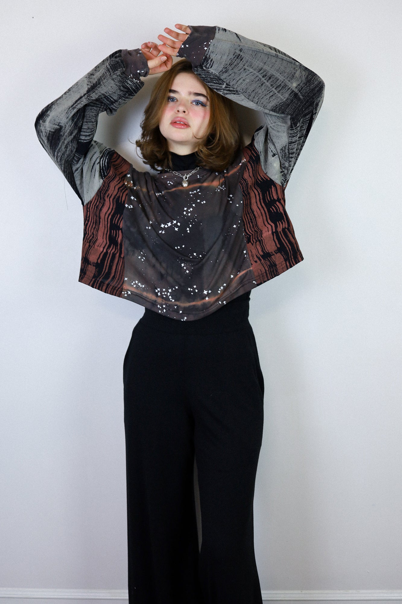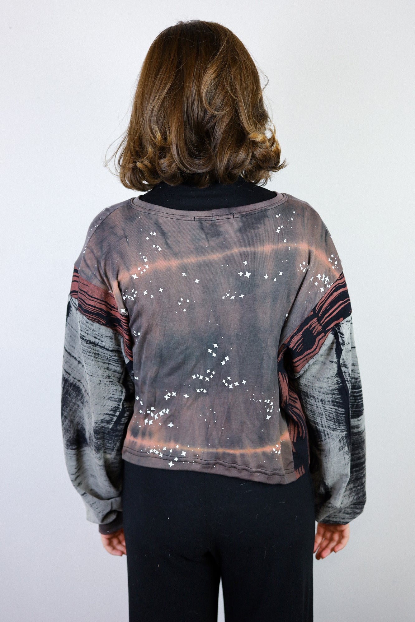 The perfect unisex boxy long sleeve. A beautiful combination of printed 'Starlight' on earthy tencel and geode 'Dry Brush' prints for the bodice and tie dyed crepe sleeves. Made to order.