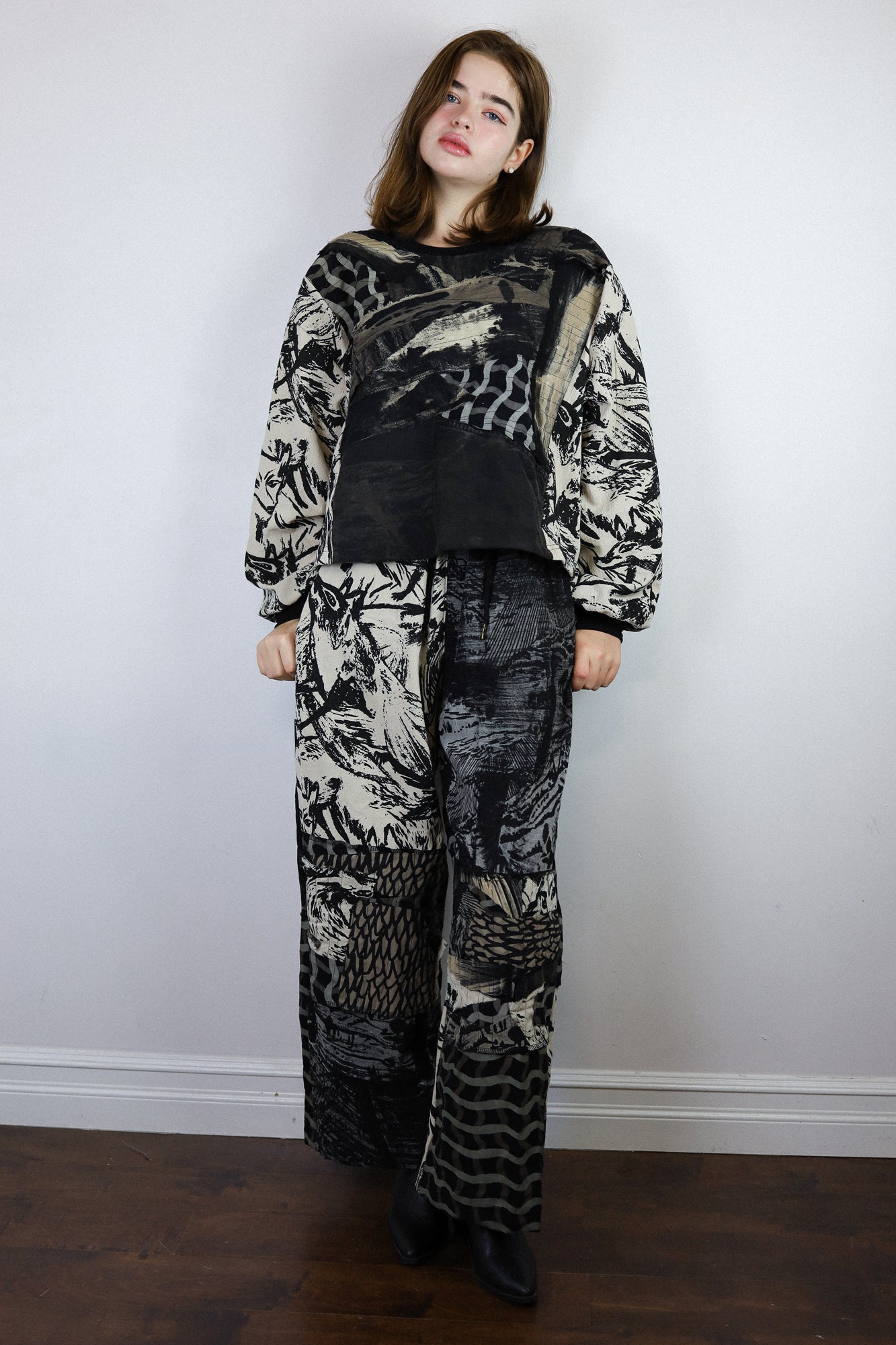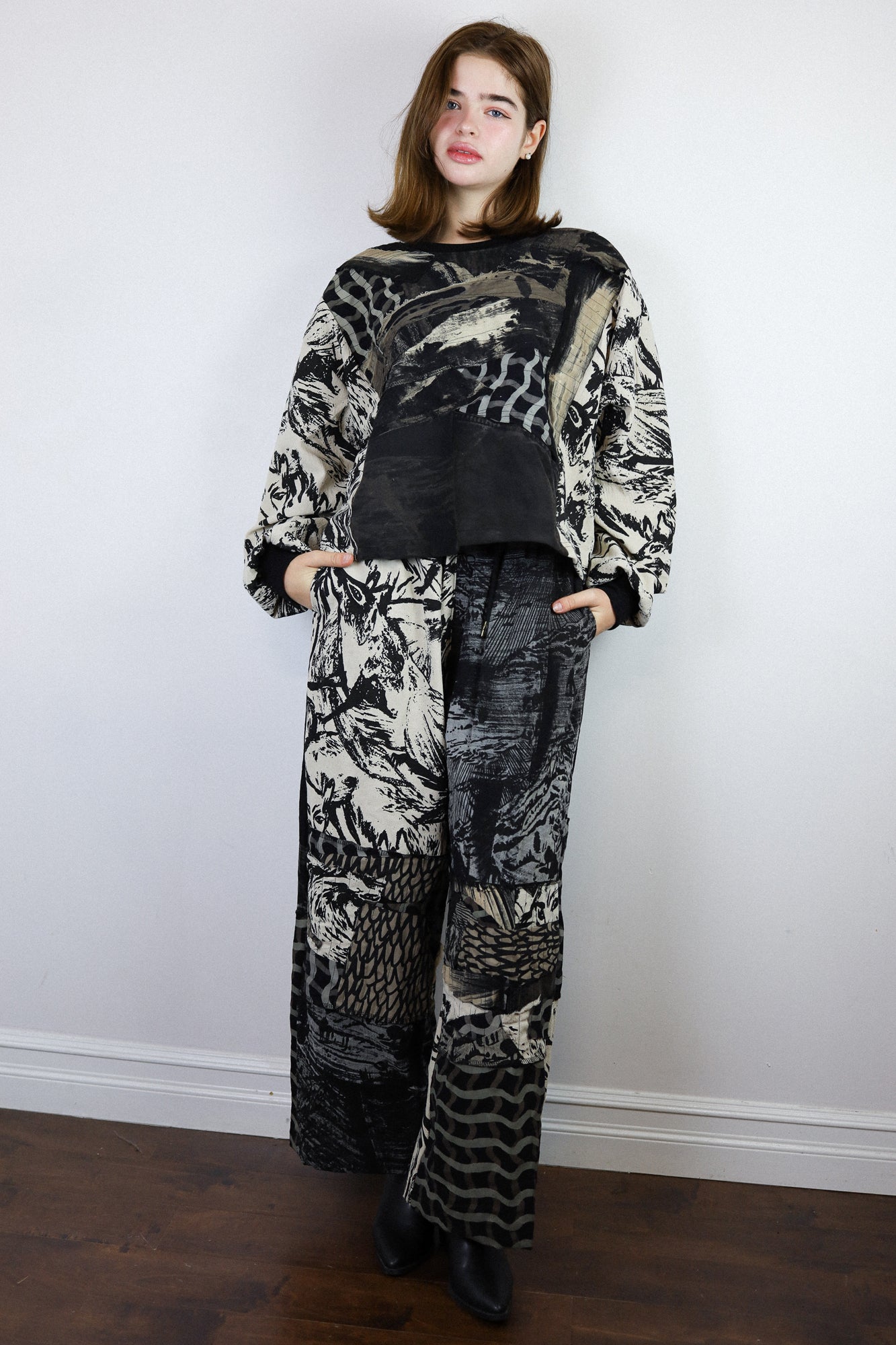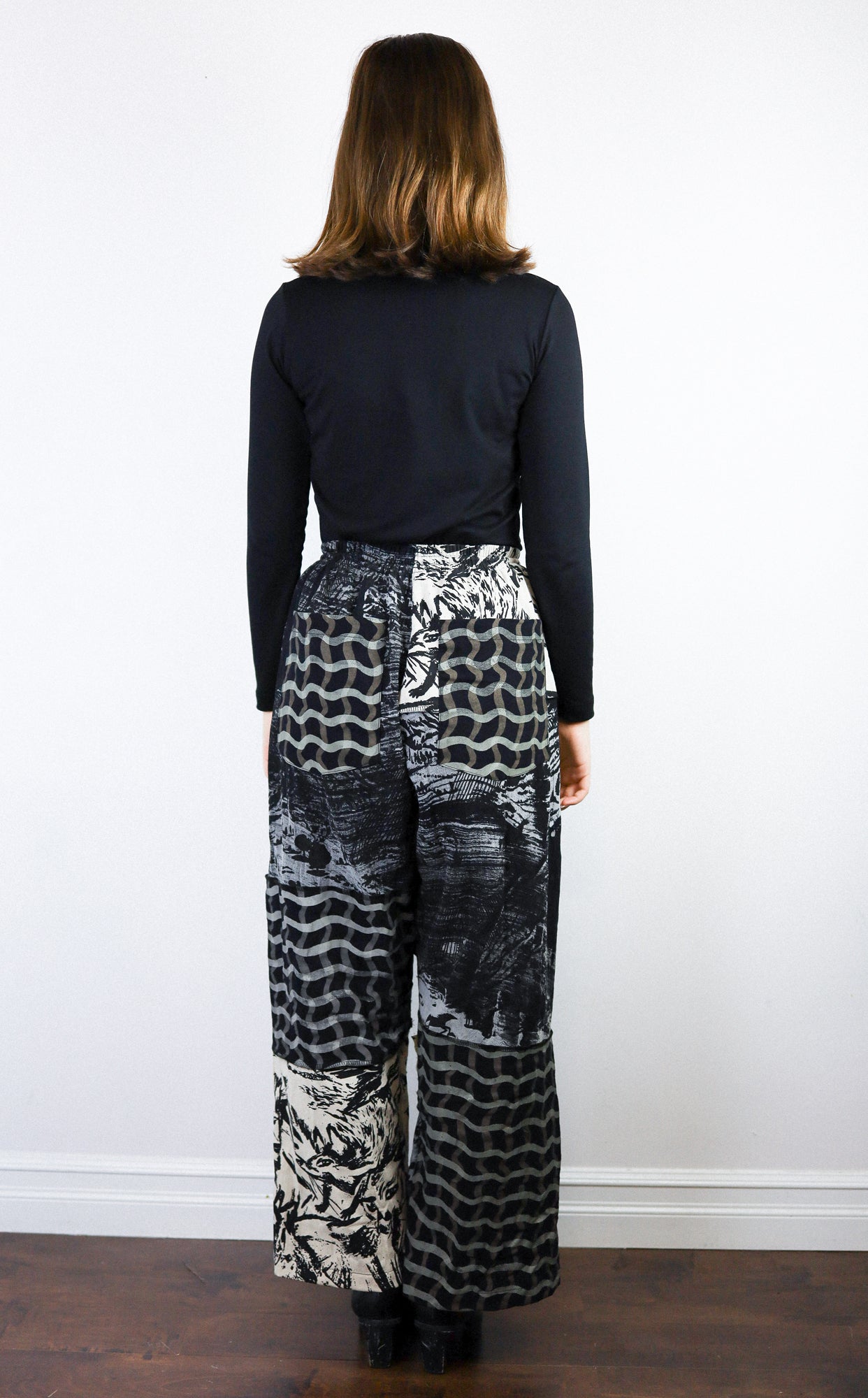 'Inky' Patchwork Crepe Pants (Size 2)