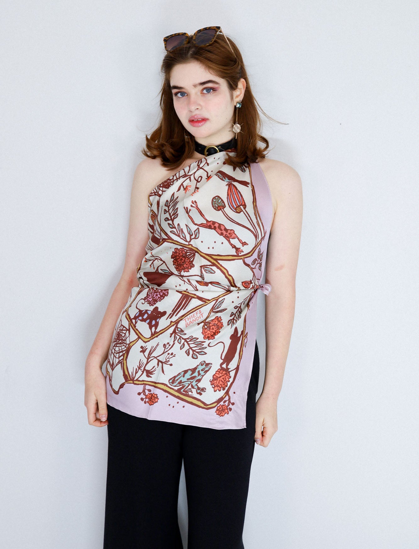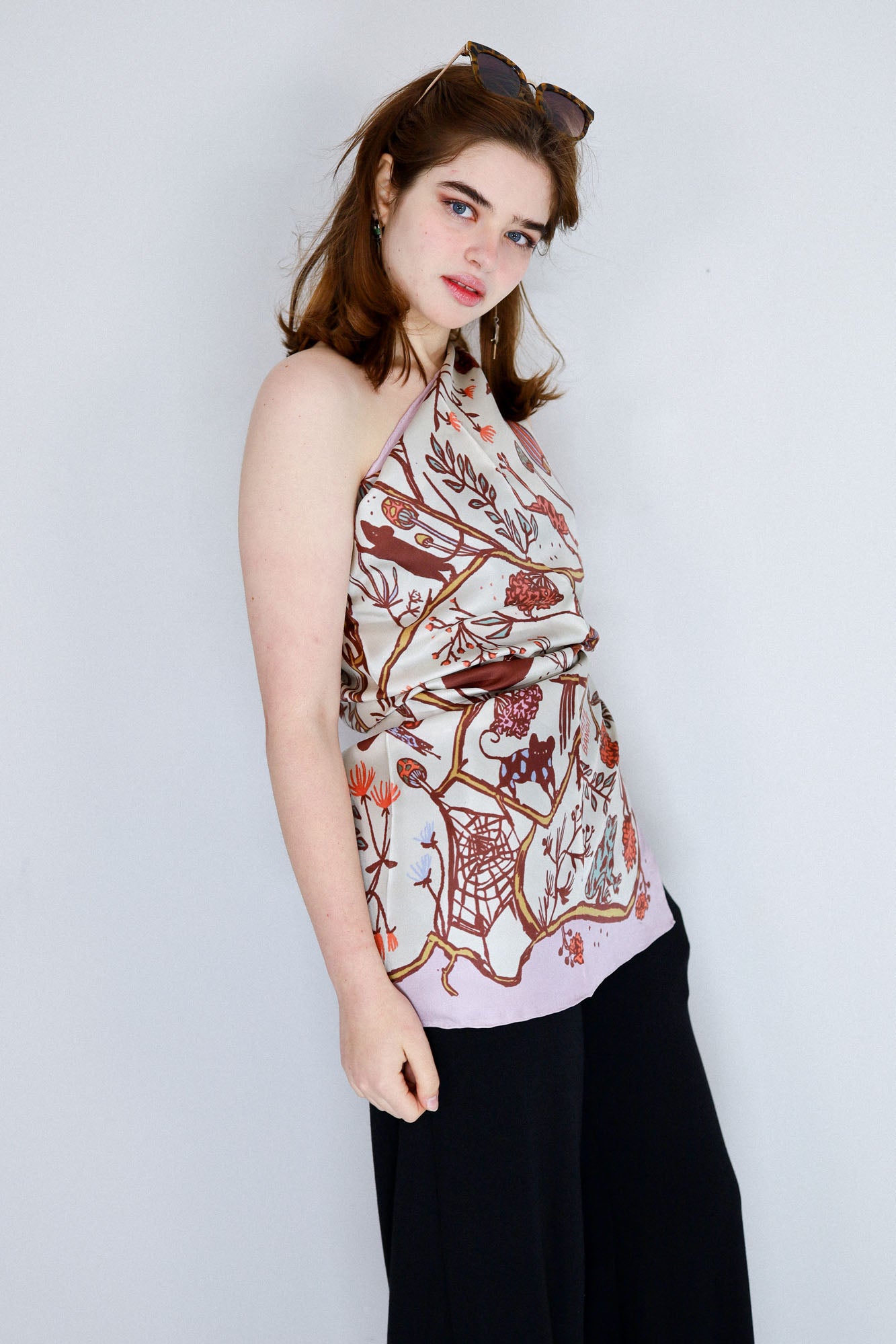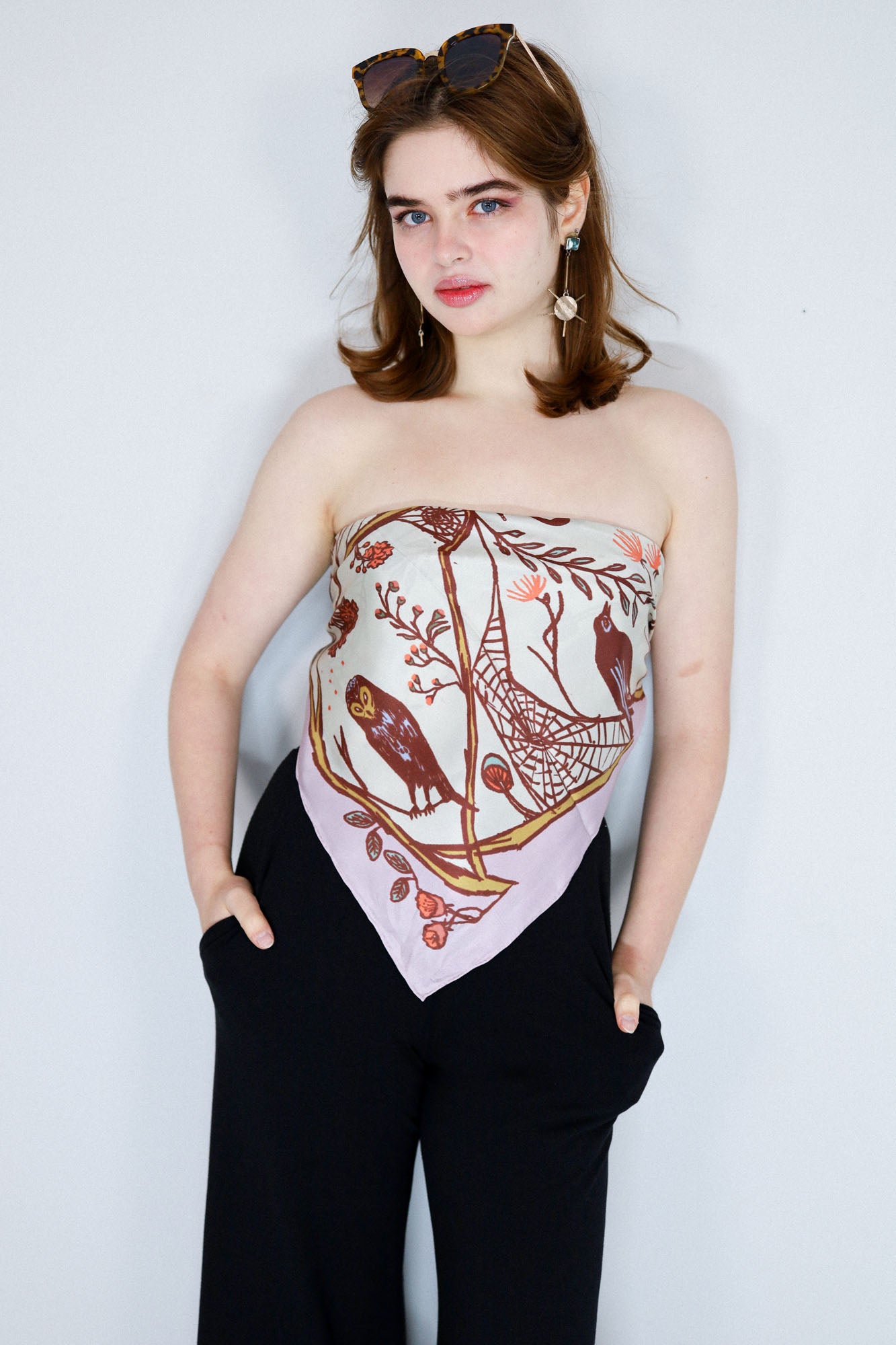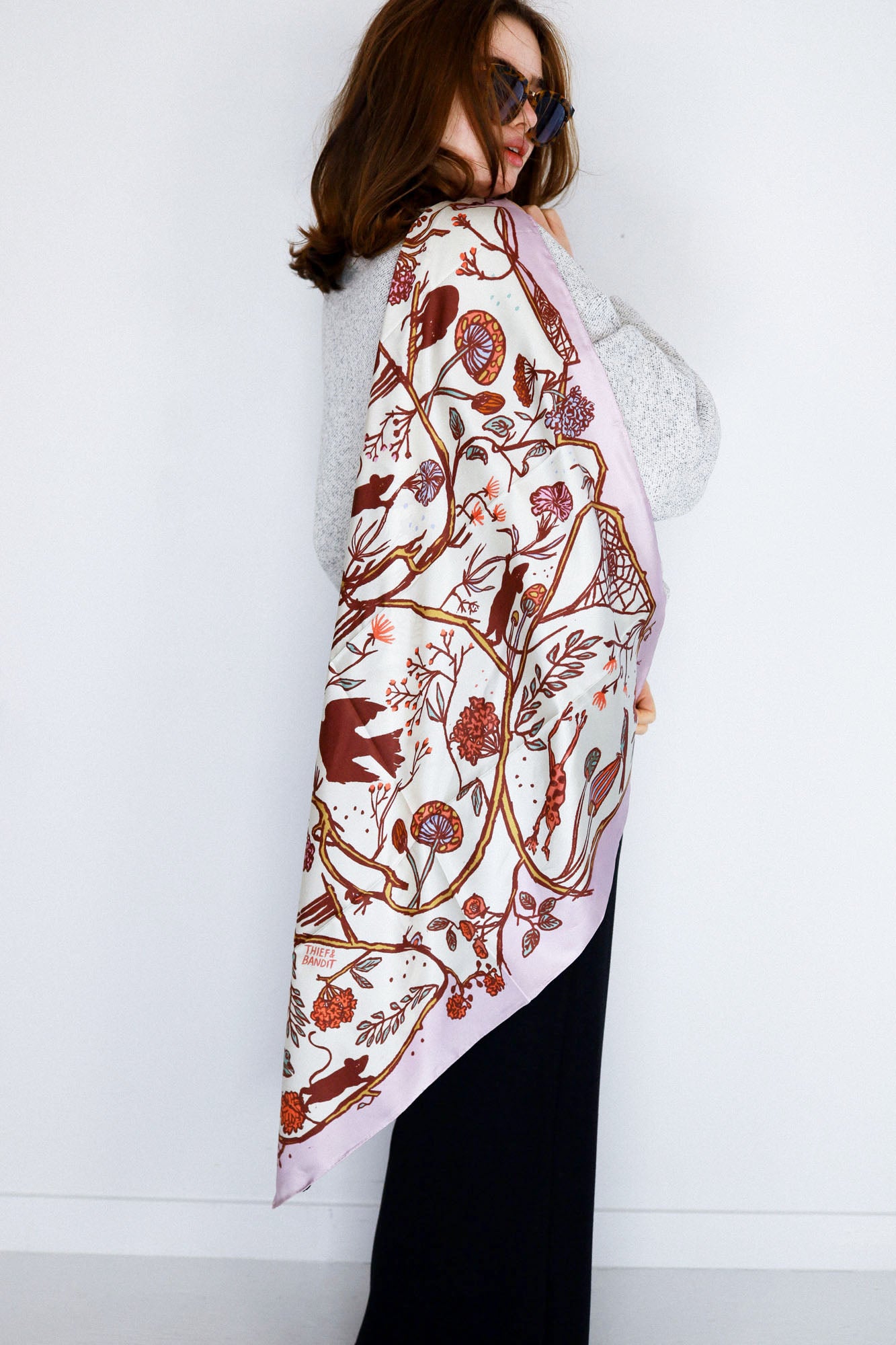 'Nightcrawlers' is back—and it's more versatile than ever. This digitally printed silk scarf features a vibrant cast of creatures ready to elevate any look. Tie it in your hair, drape it as a bandana, wrap it around your waist, or let your imagination take the lead. At 34 by 34 inches, it's the perfect size for endless styling possibilities.