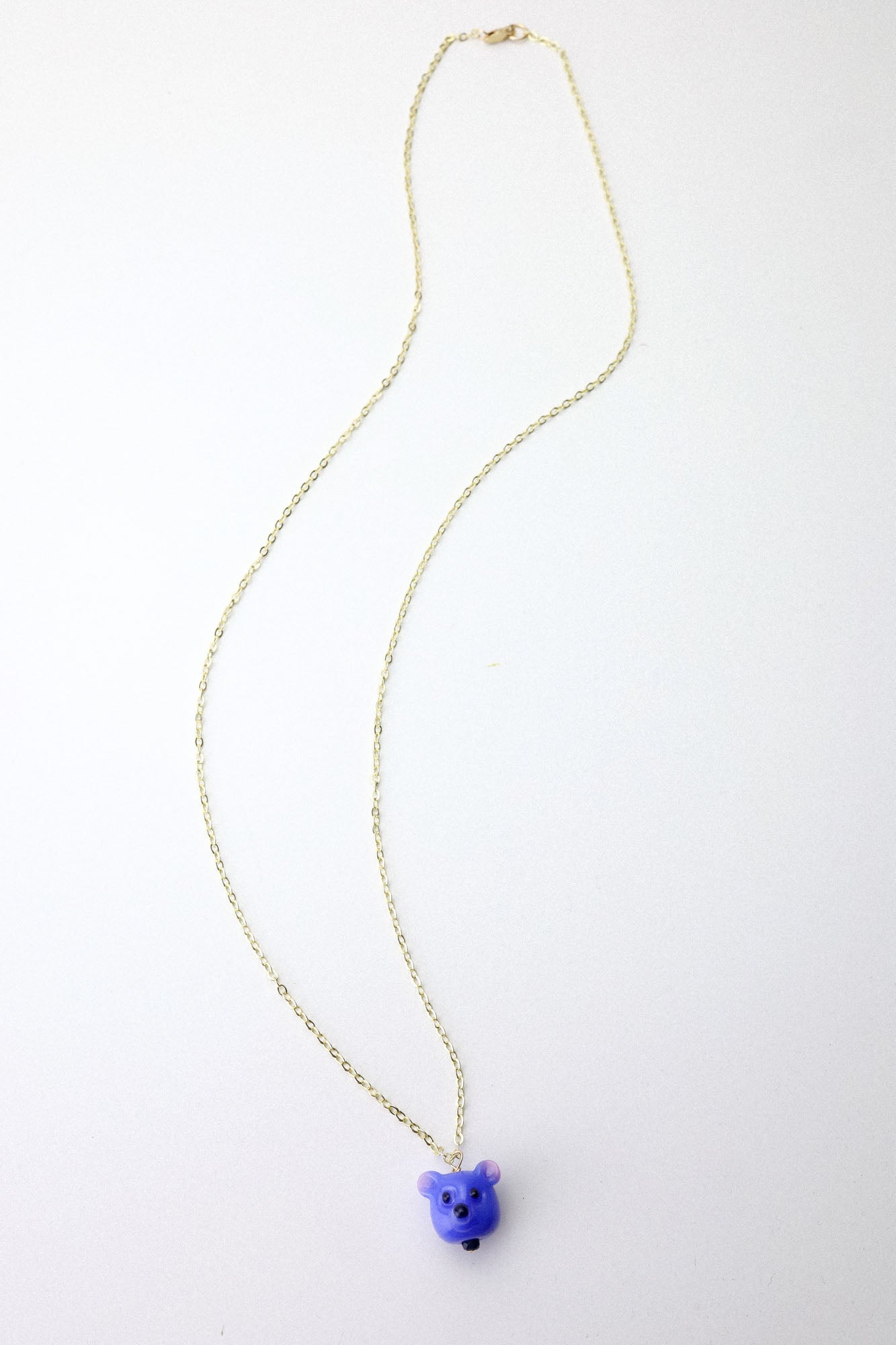 One of a kind glass bead drop necklace in Blue Bear
