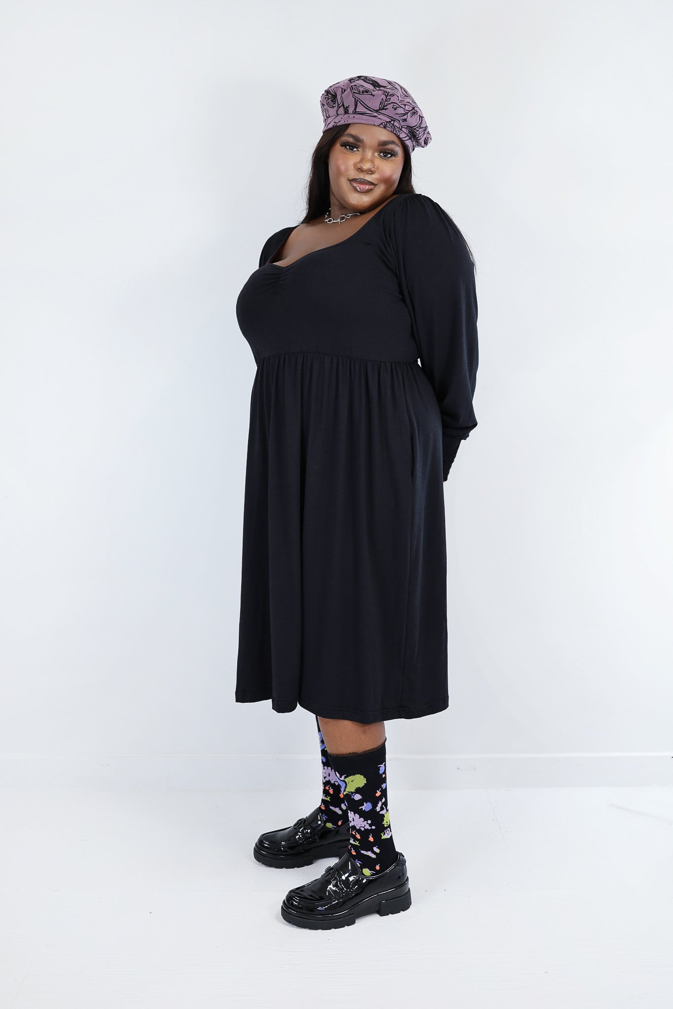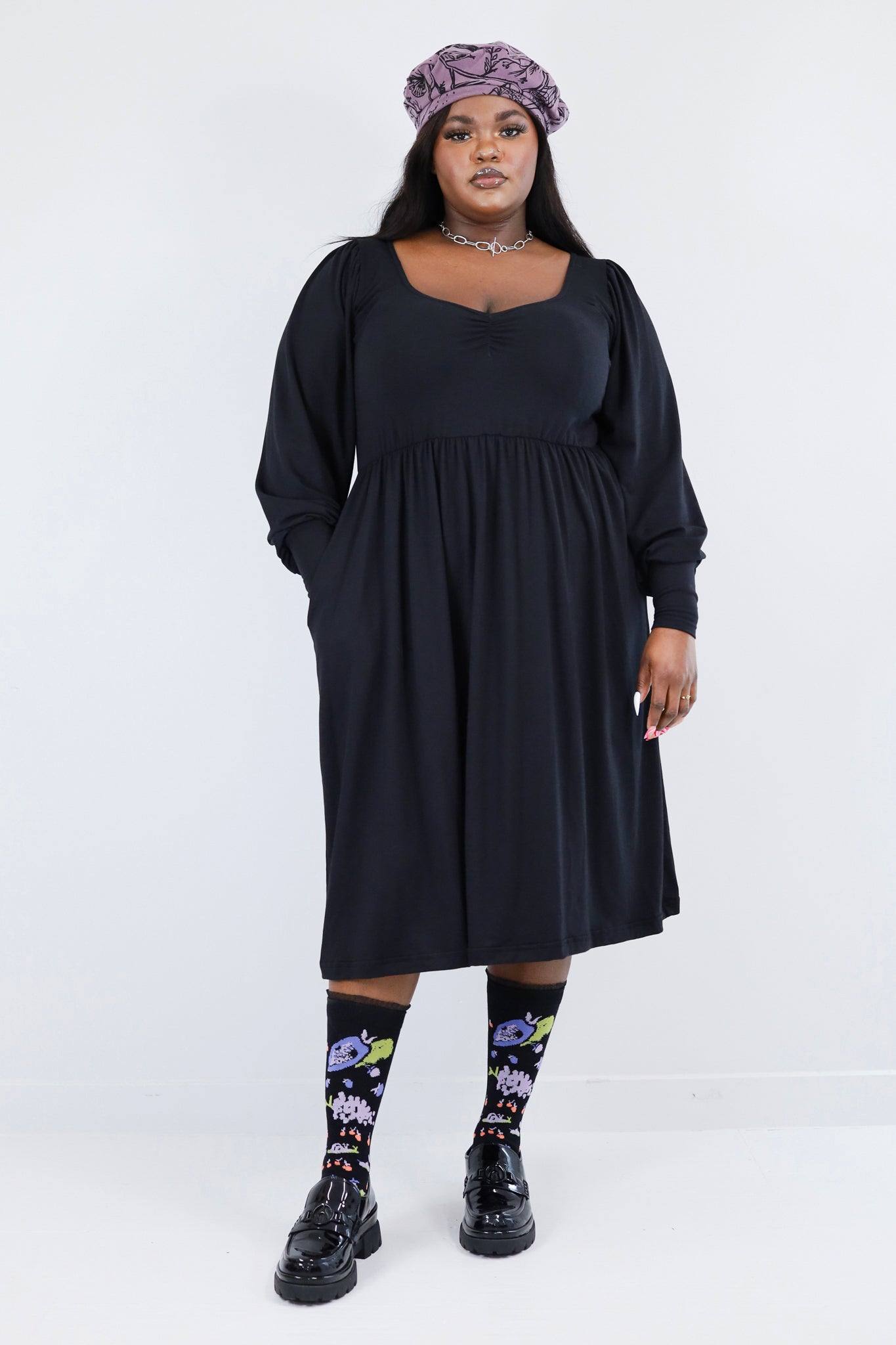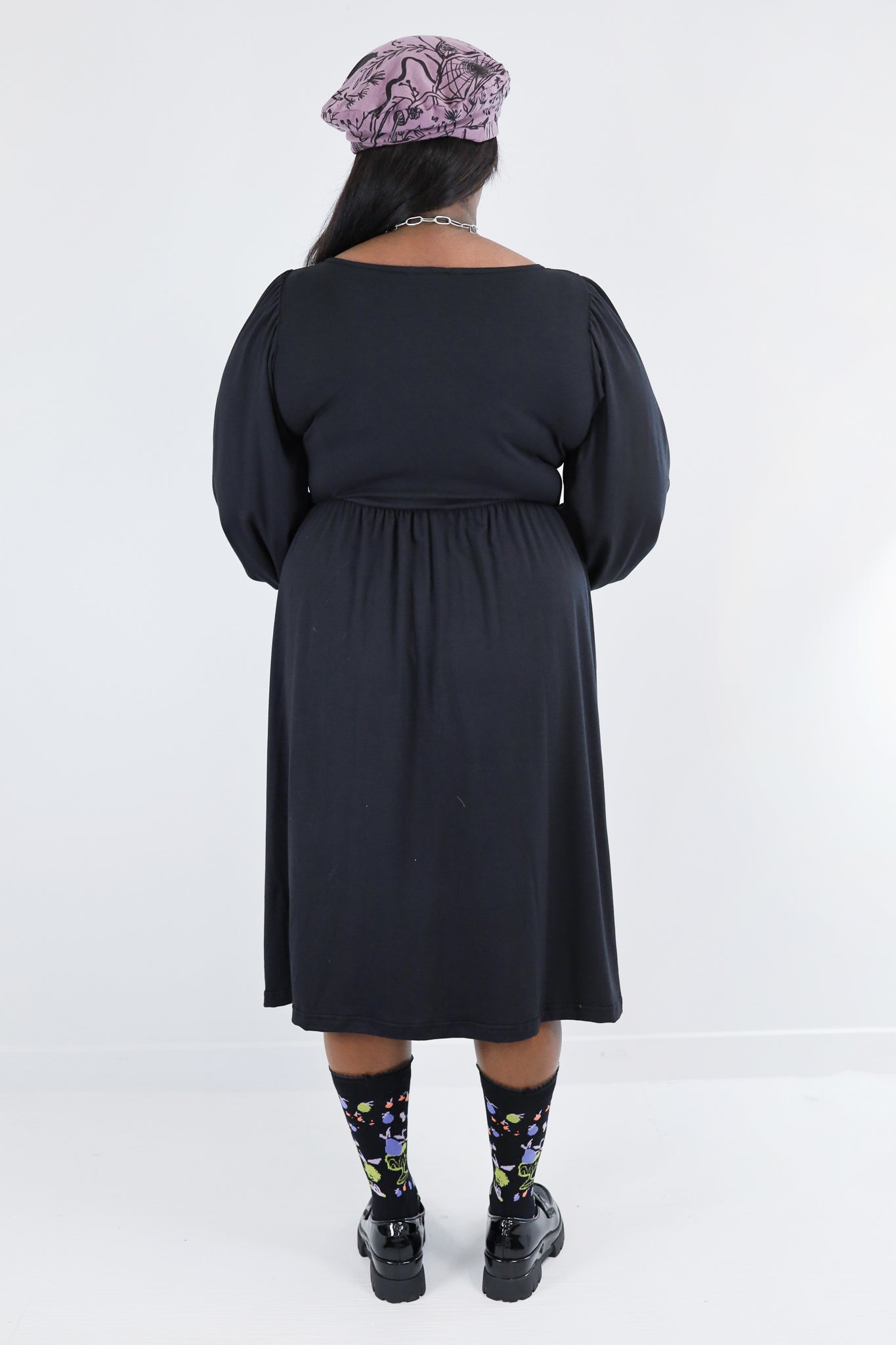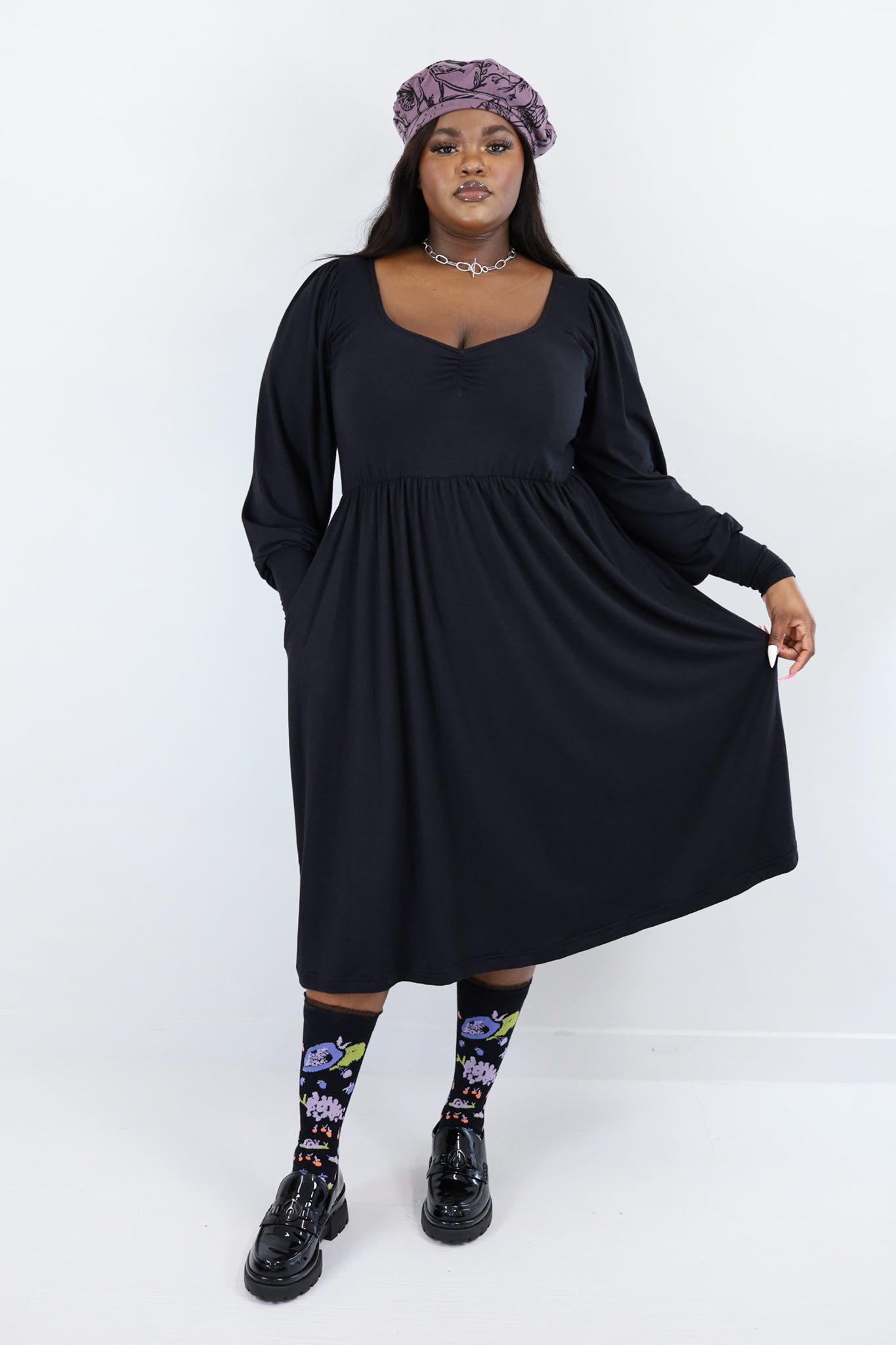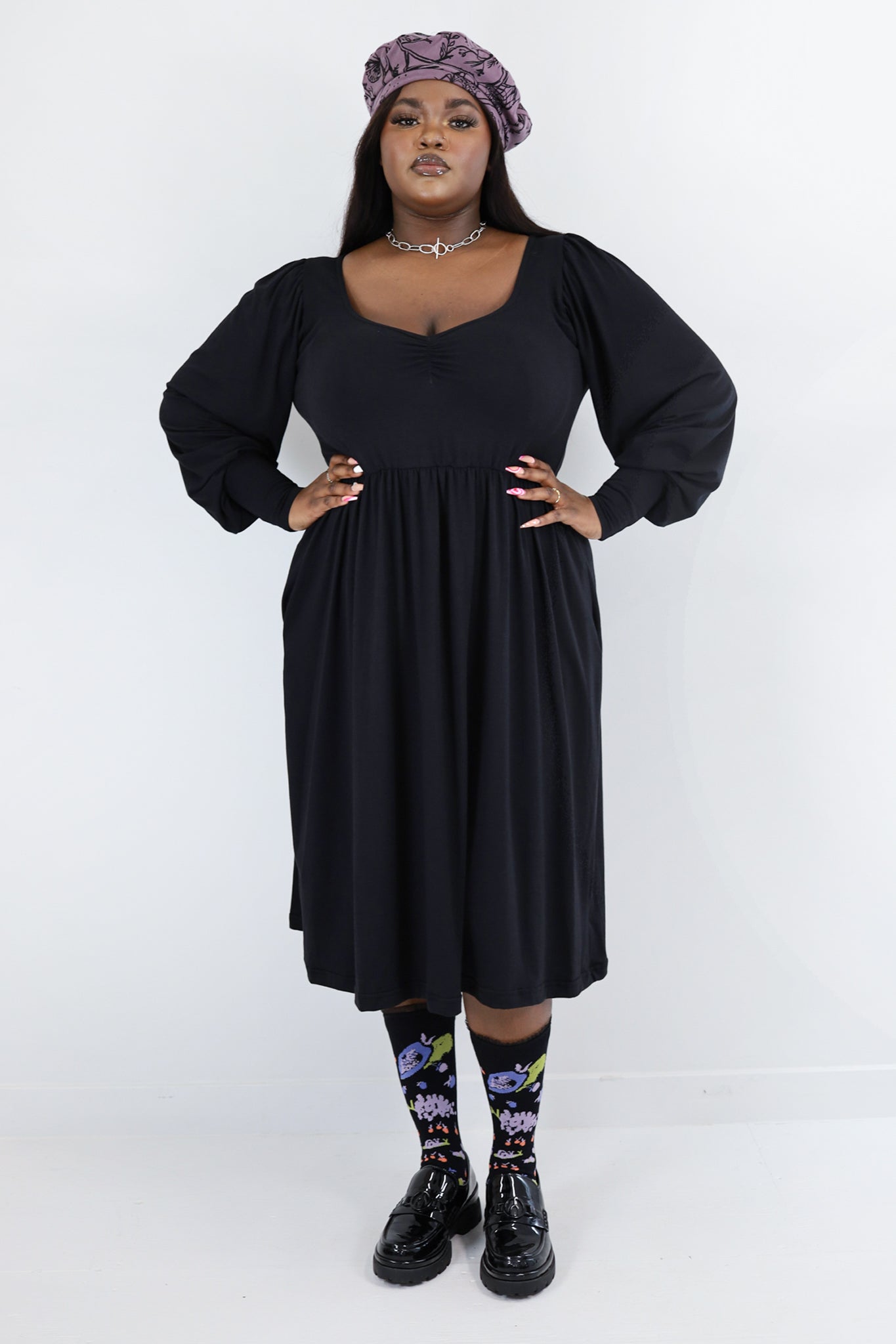 This gorgeous dress features a scooped sweetheart neckline and elegant billowy sleeves. The perfect classy dress for any occasion. Available in both mini and midi lengths.