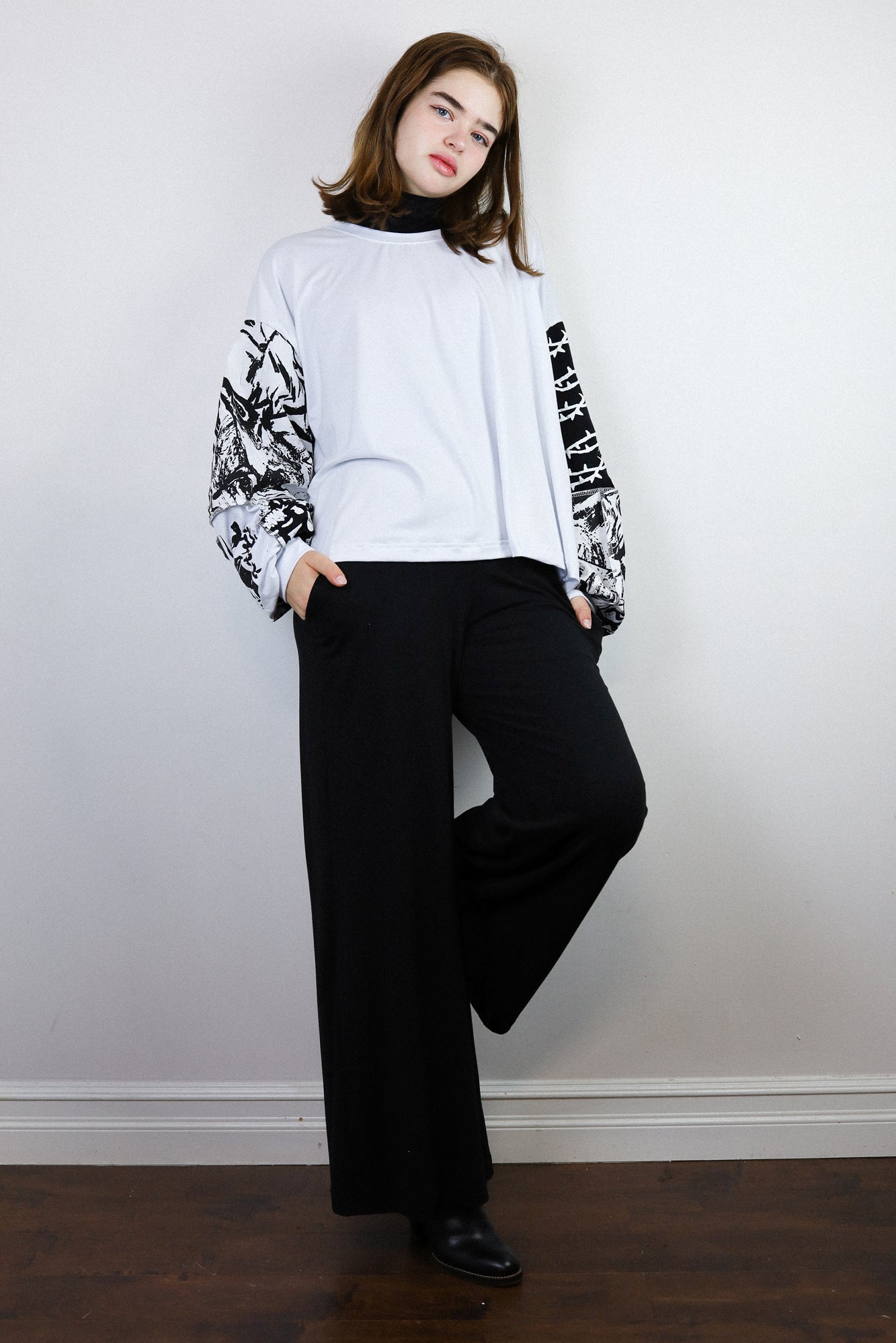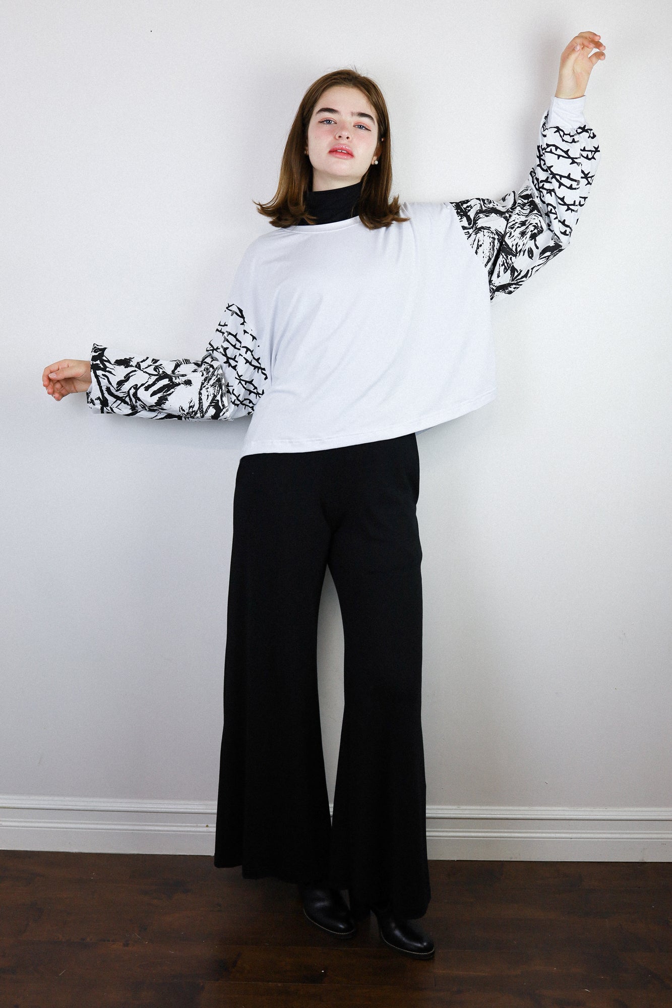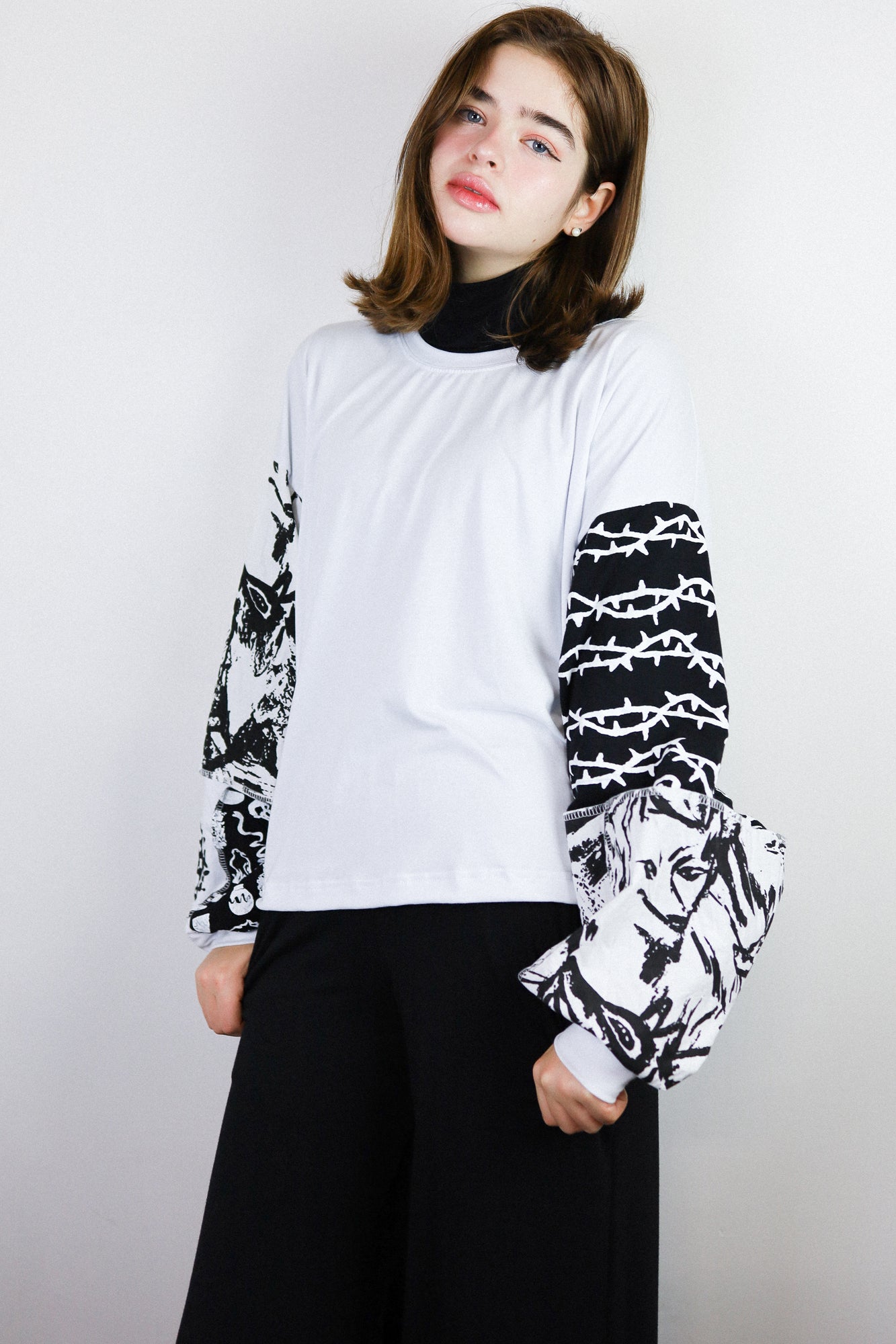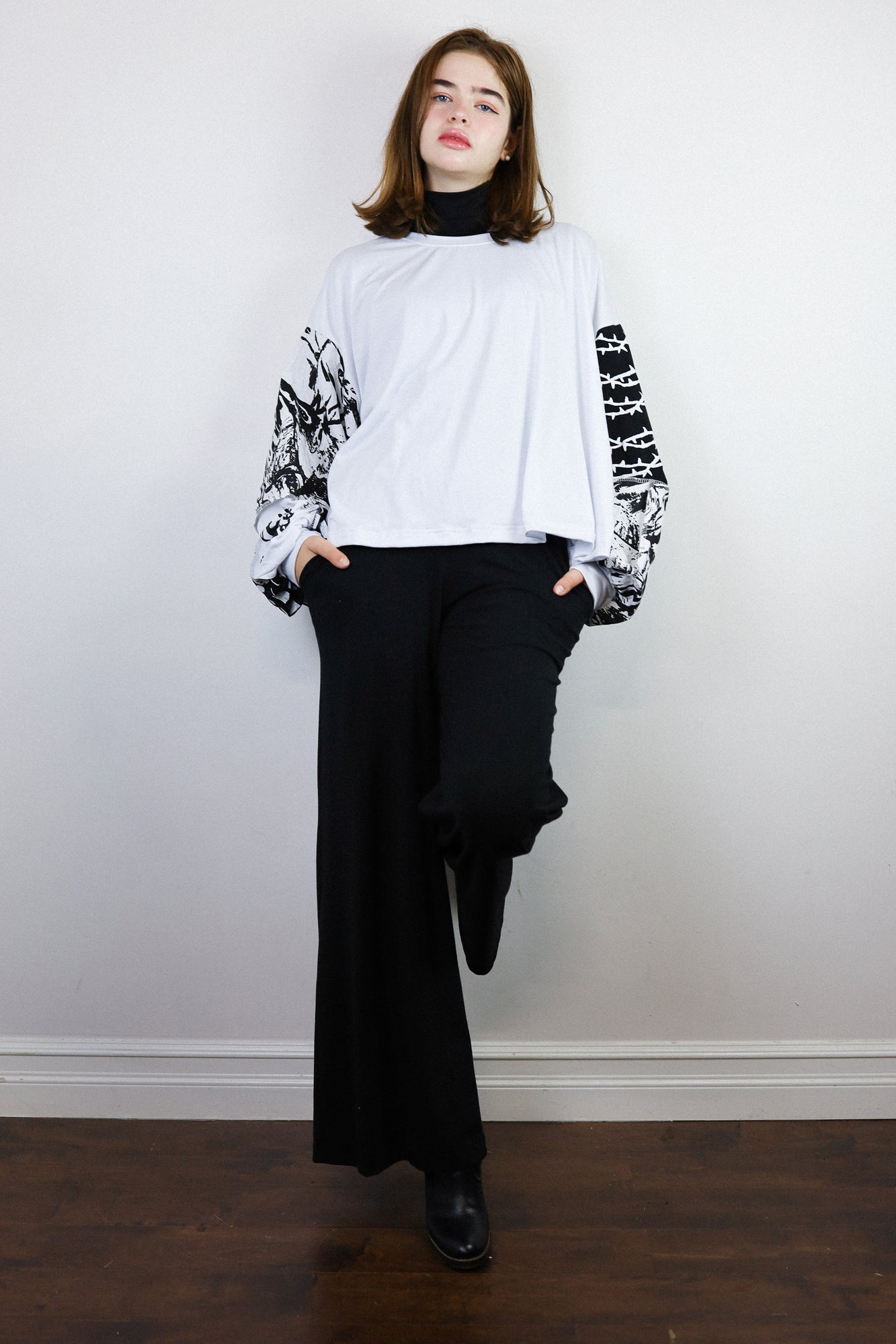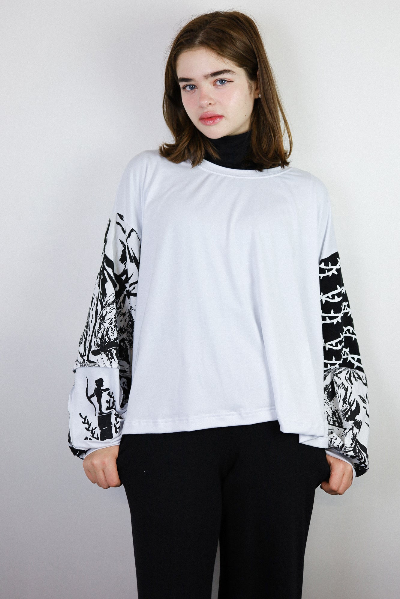 The perfect unisex boxy long sleeve created with remnants of T&B fabrics of the past.